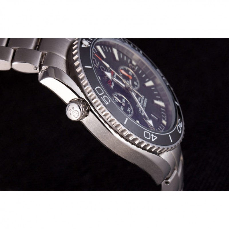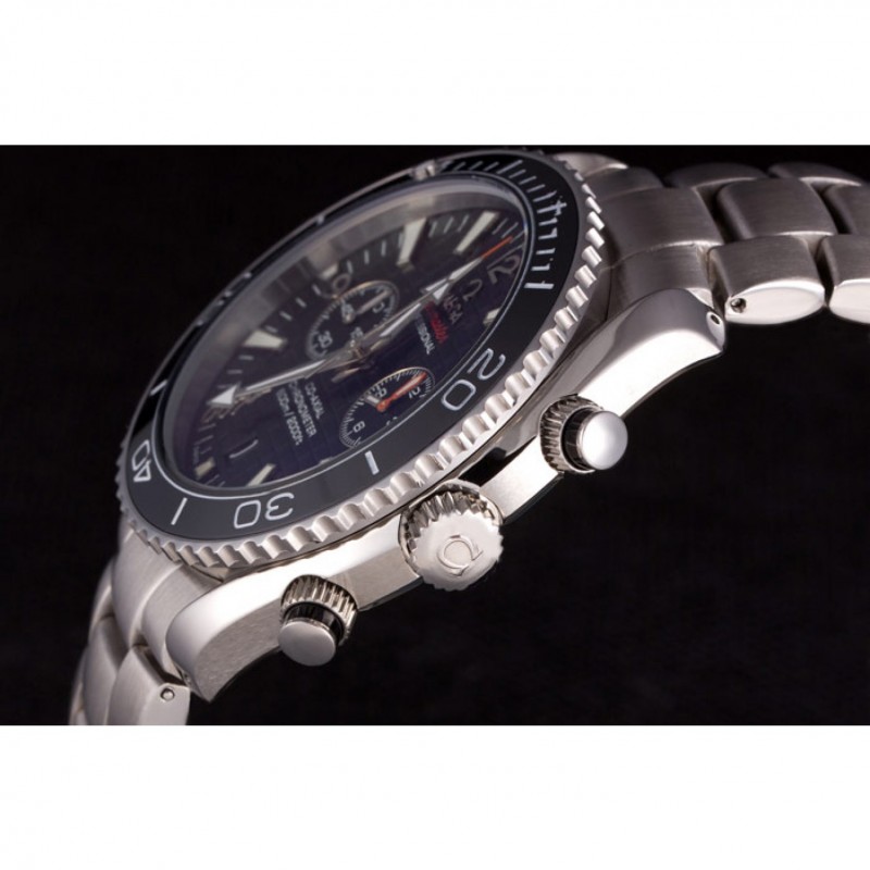 Couronne:logo Omega couronne en acier inoxydable gravé poli cutwork avec une couronne de bouton-poussoir de chaque côté et une couronne cutwork sur le dessus adjacent