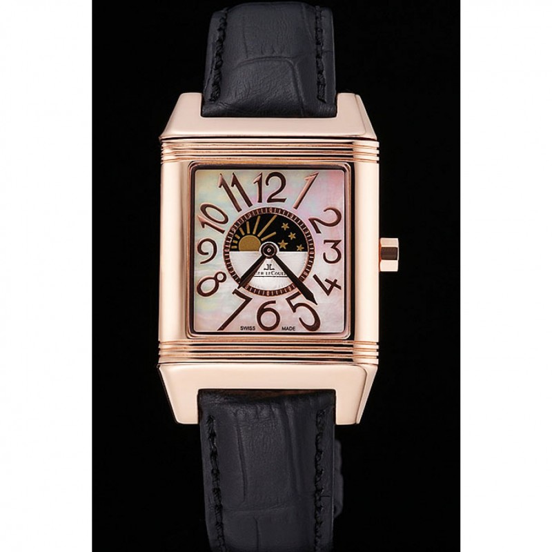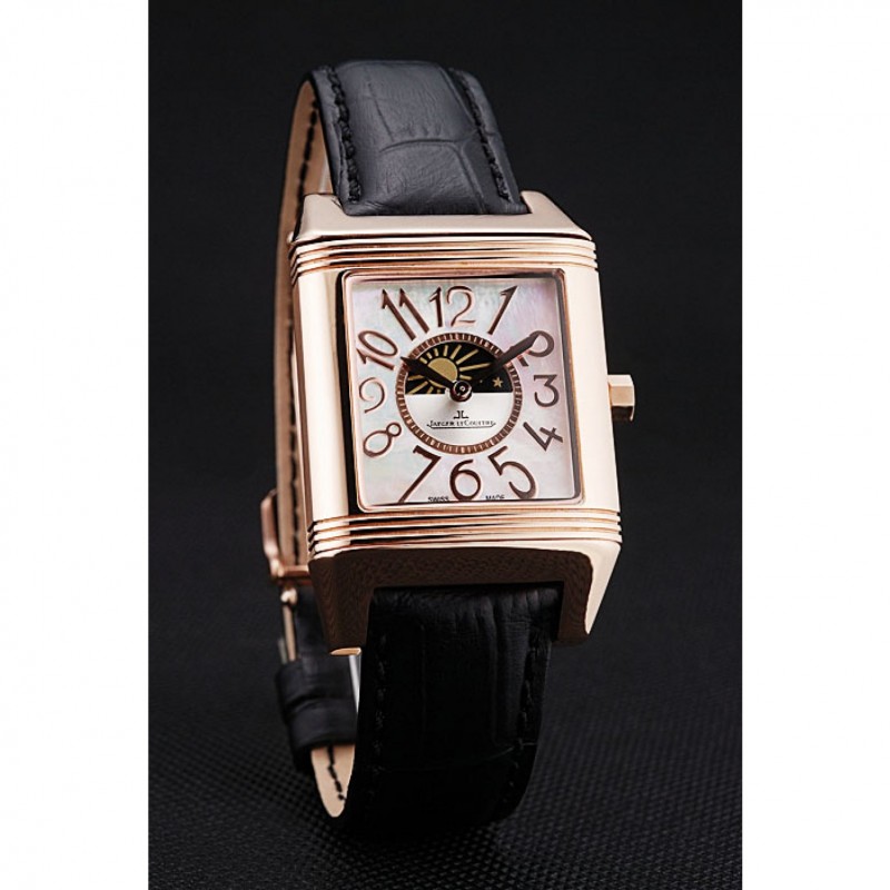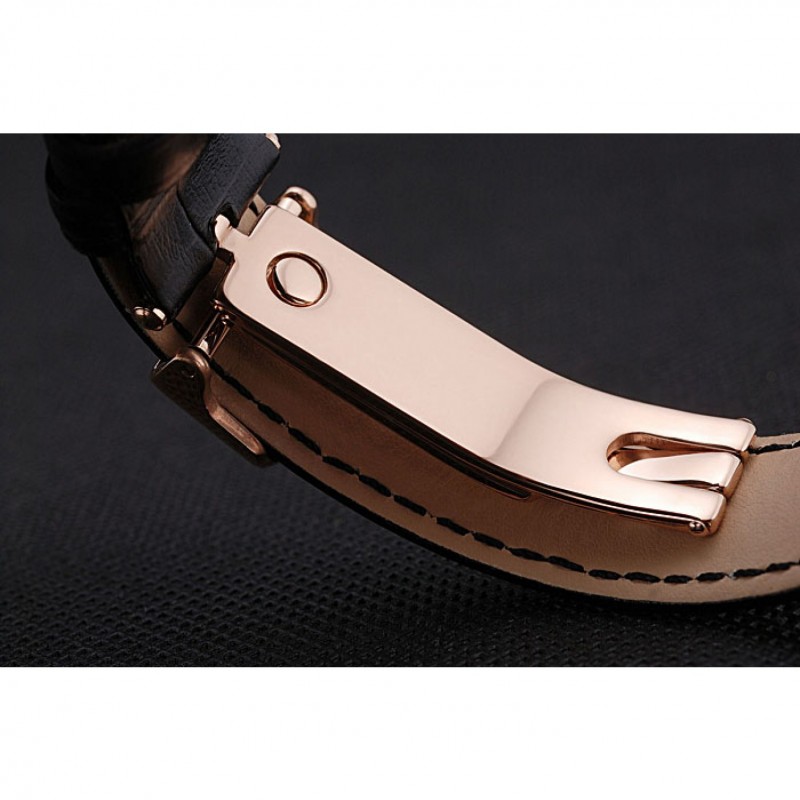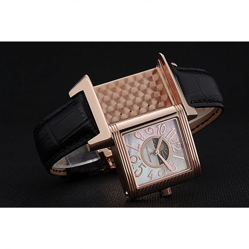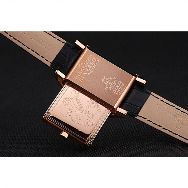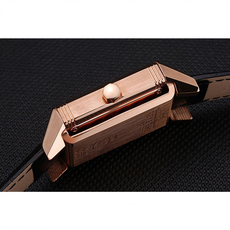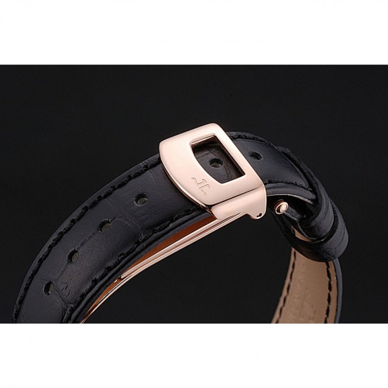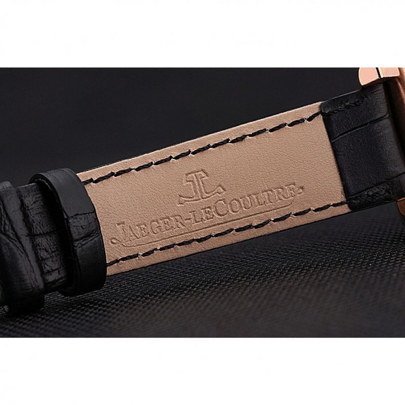 Bracelet:logo et Jaeger-Le Coultre chaleur bracelet en cuir crocodile noir gravé rose plaqué or logo et Jaeger-Le Coultre gravé rabattable dans fermoir à crochet
