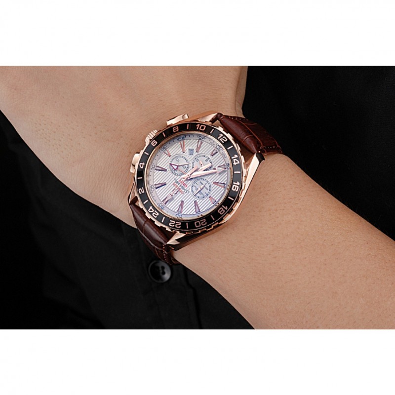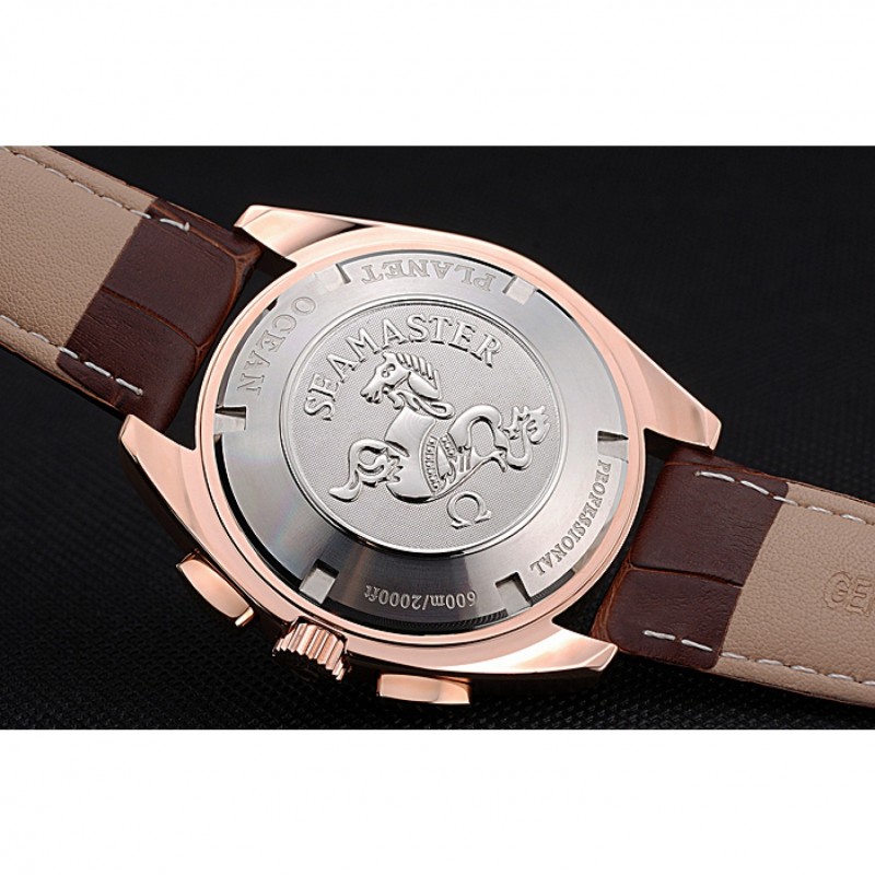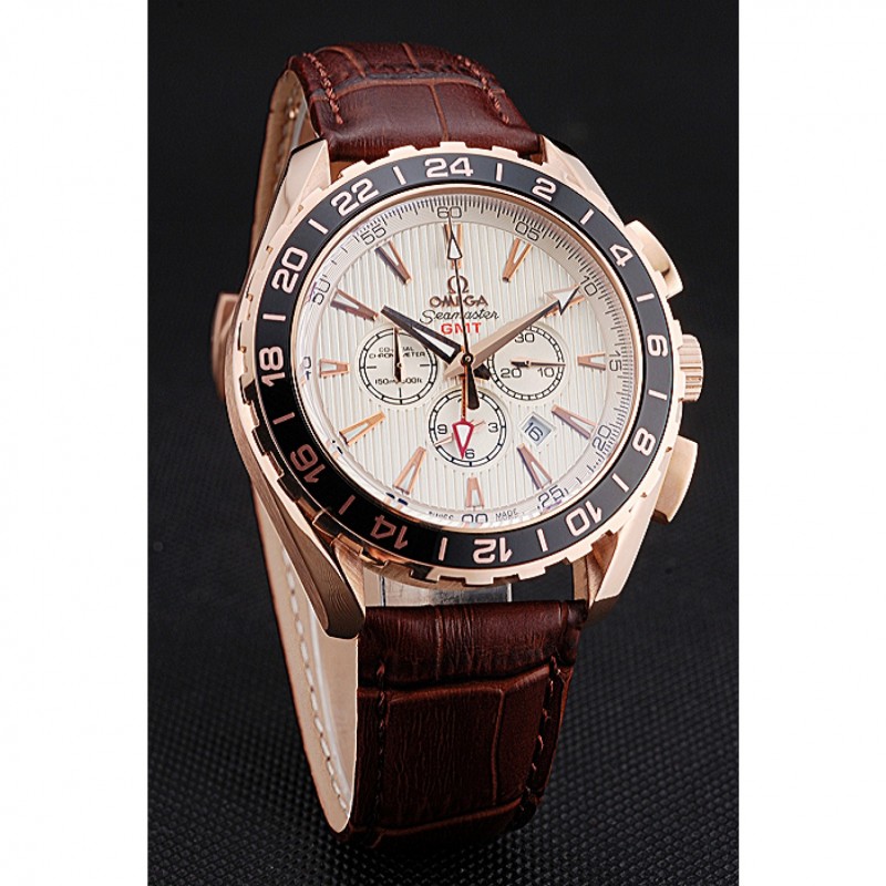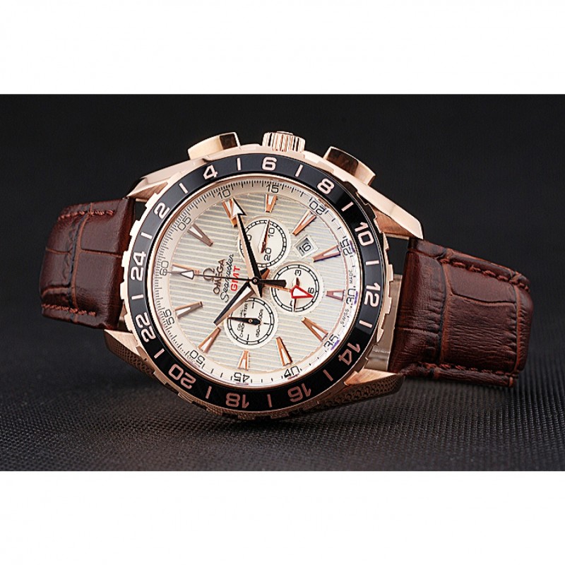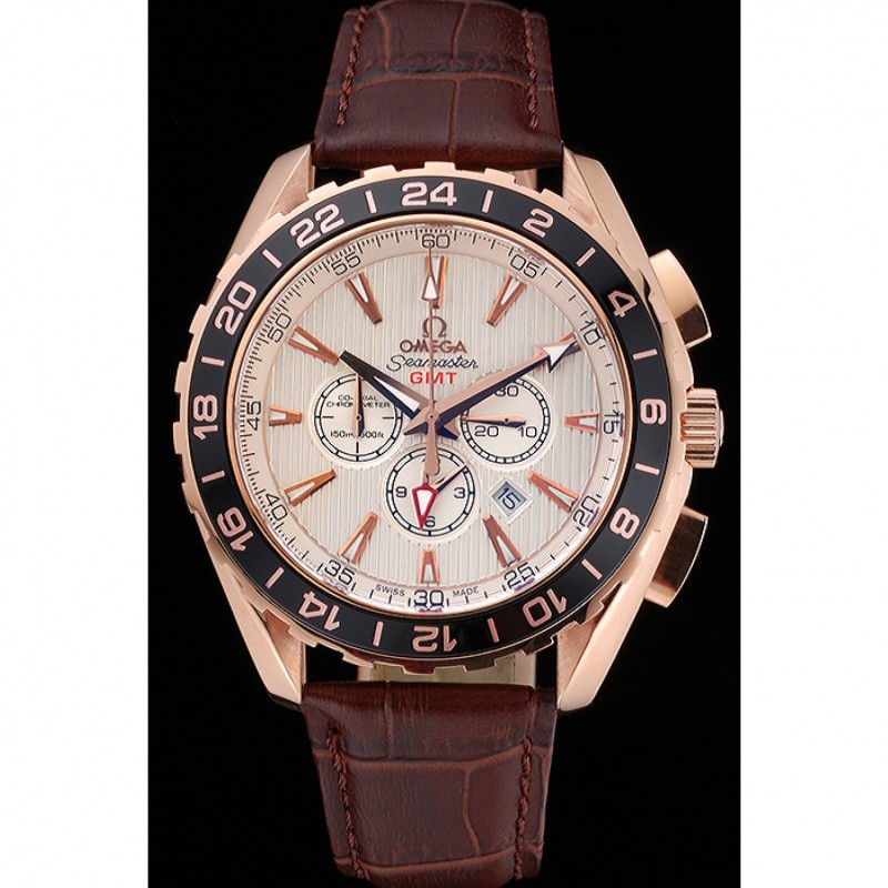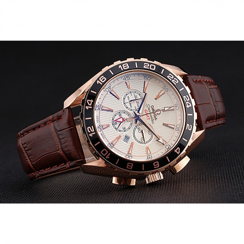 Pas Cher Replique Montre Omega Seamaster Aqua Terra GMT Chrono Ivoire cadran brun Bracelet en cuir 622534