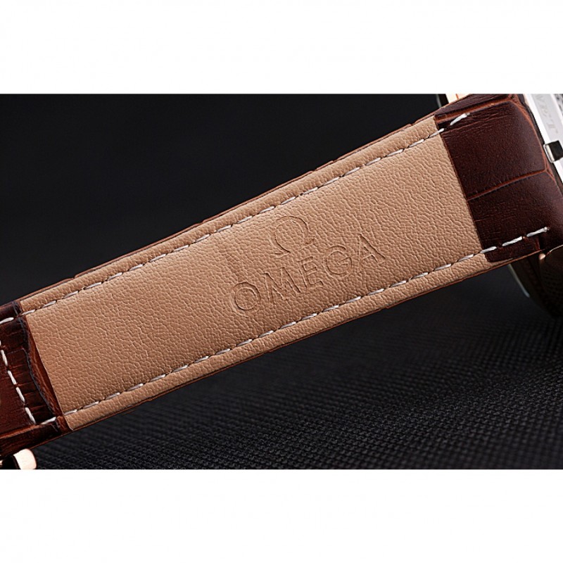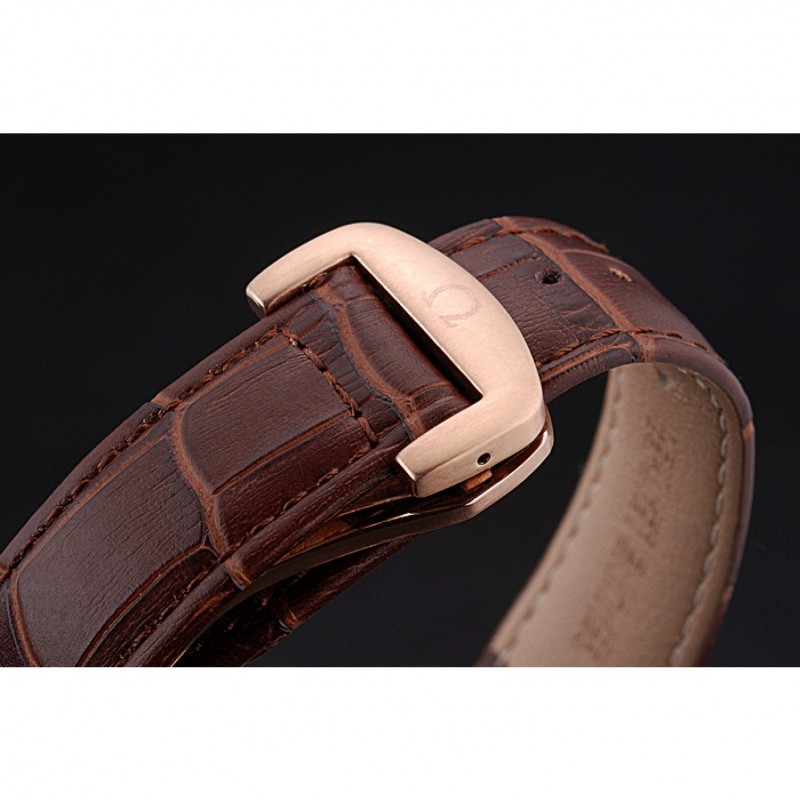 Bracelet:logo et la chaleur Omega gaufrés crocodile brun bracelet en cuir avec le logo 18k gravé en or rose plaqué fermoir crochet