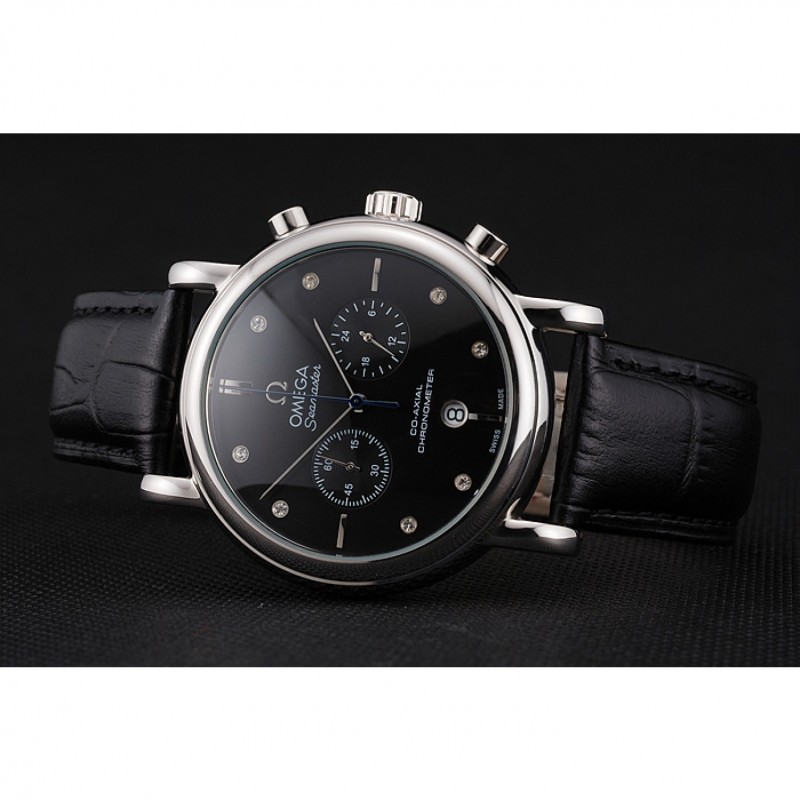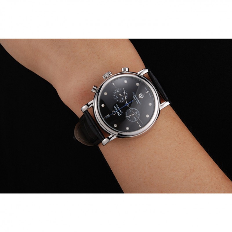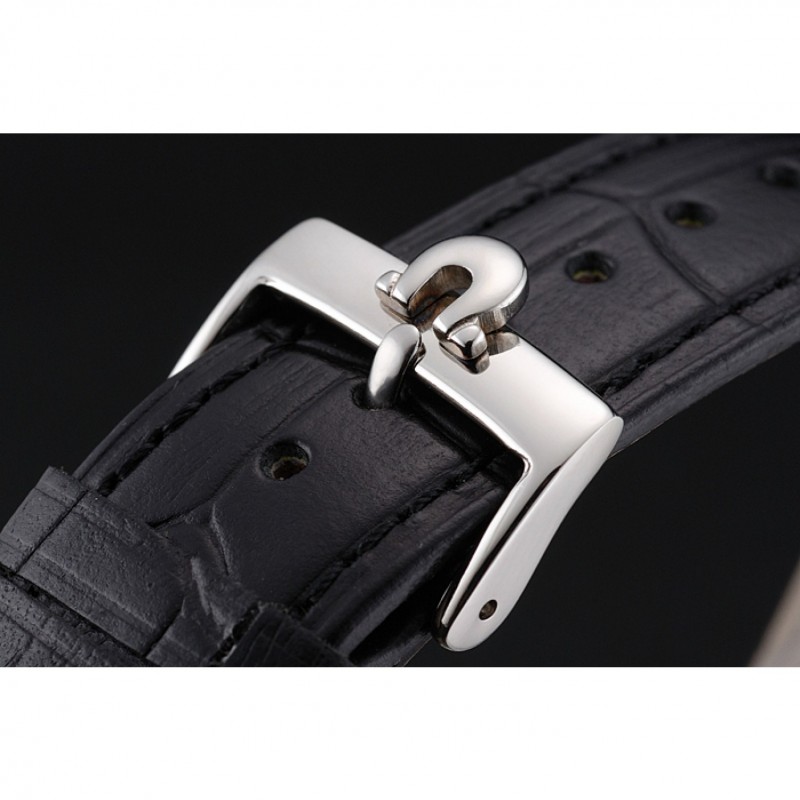 Bracelet:Omega et le logo bracelet en cuir de crocodile noir en relief thermique avec Omega logo gravé en acier inoxydable poli fermoir crochet boucle