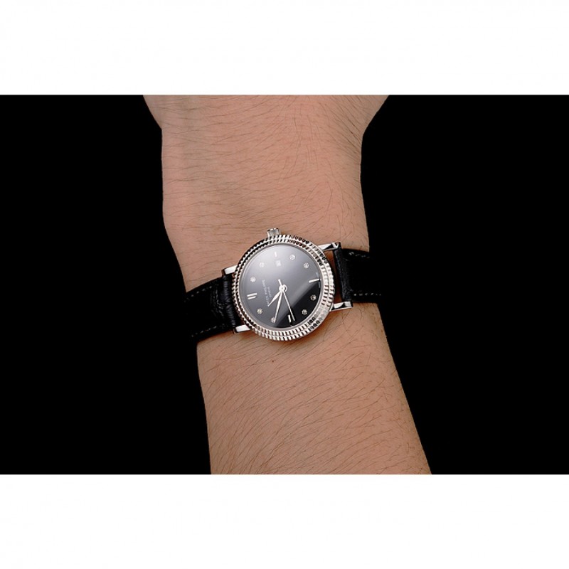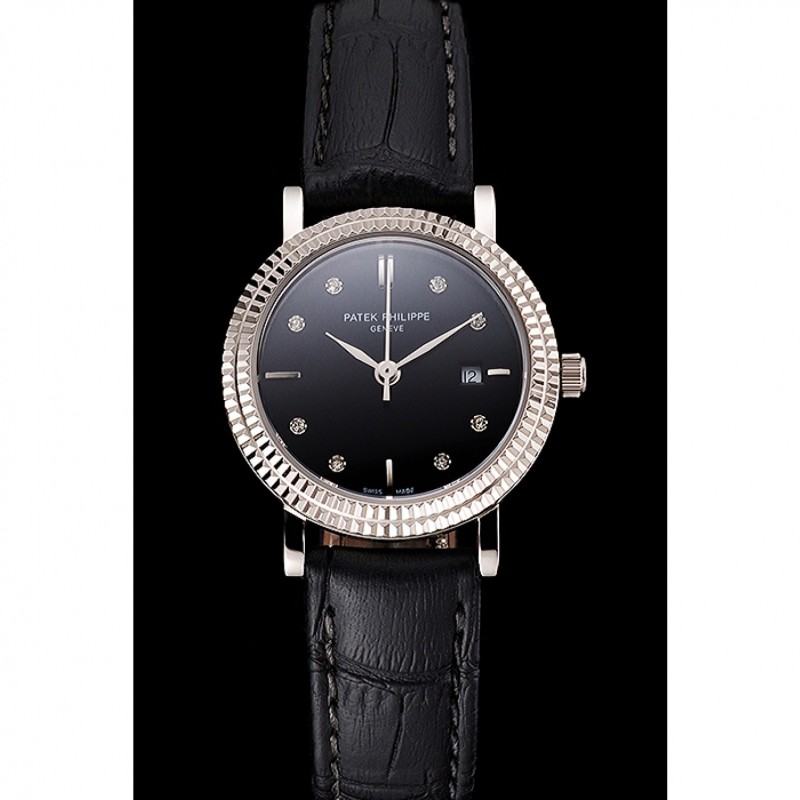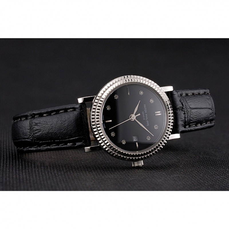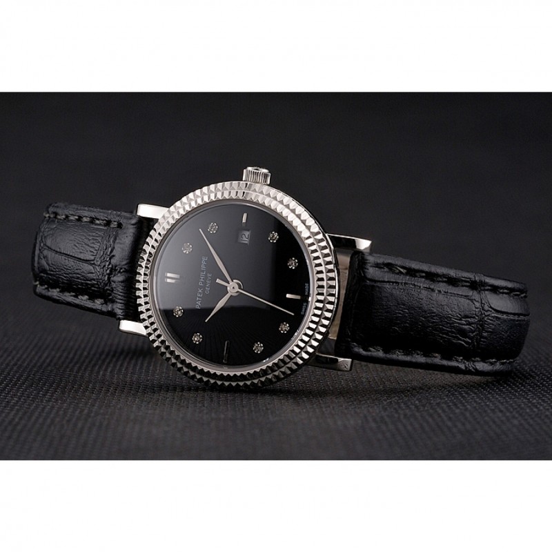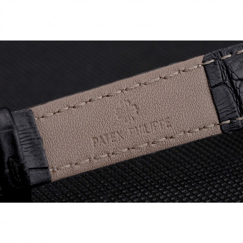 Bracelet:logo et la chaleur Patek Philippe gaufrée bracelet en cuir de crocodile noir avec logo et Patek Philippe gravé en acier inoxydable poli fermoir crochet boucle