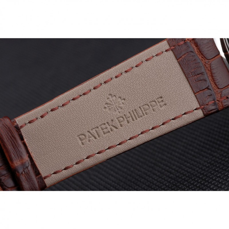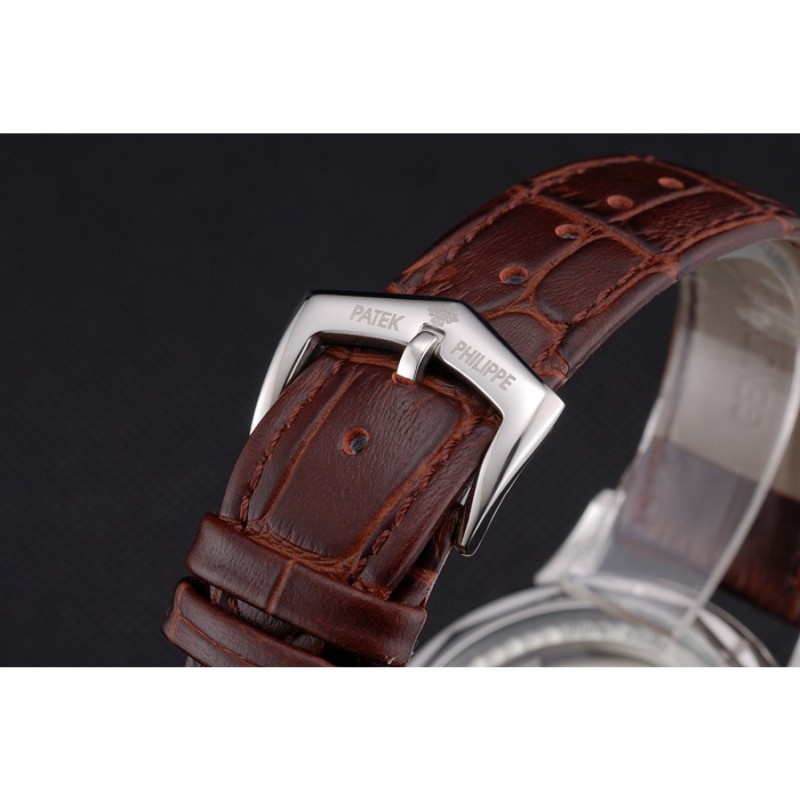 bracelet:Patek Philippe Geneve chaleur en relief crocodile brun bracelet en cuir avec logo et Patek Philippe inscrit fermoir crochet boucle en acier inoxydable poli