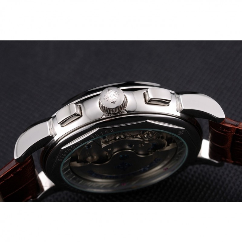 Retour:acier inoxydable poli pression cerclées -dans arrière avec la mécanique transparents centre révélateur et gravures Patek Philippe