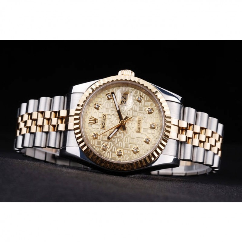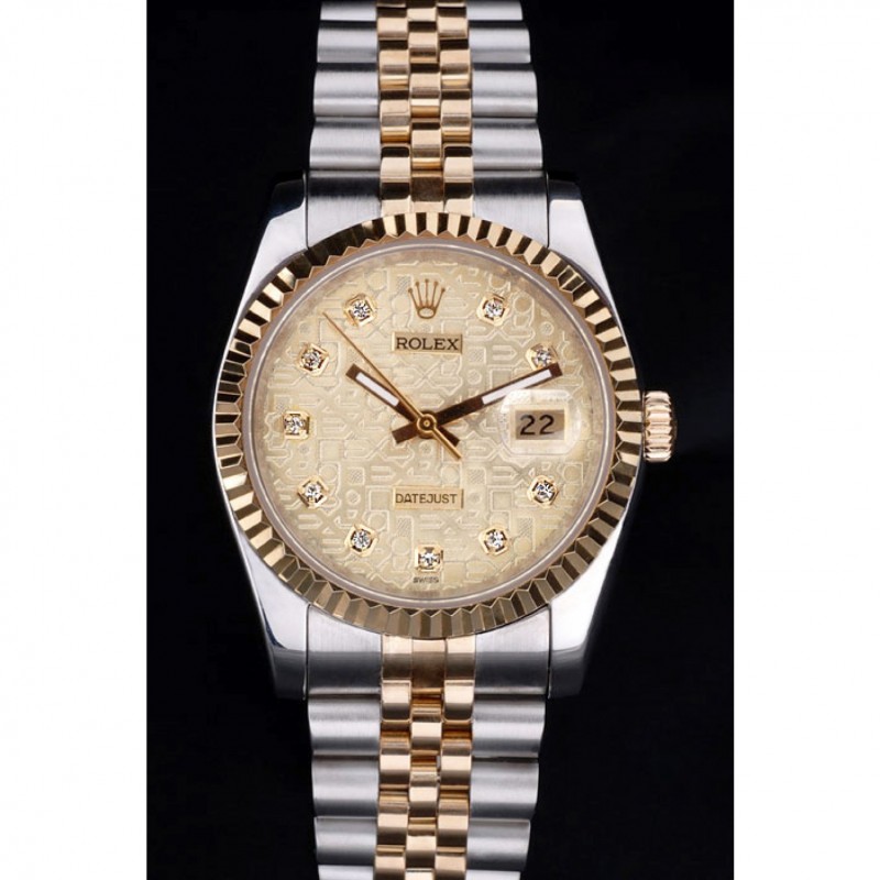 Couronne:18k plaqué or jaune couronne cutwork en acier avec le logo Rolex