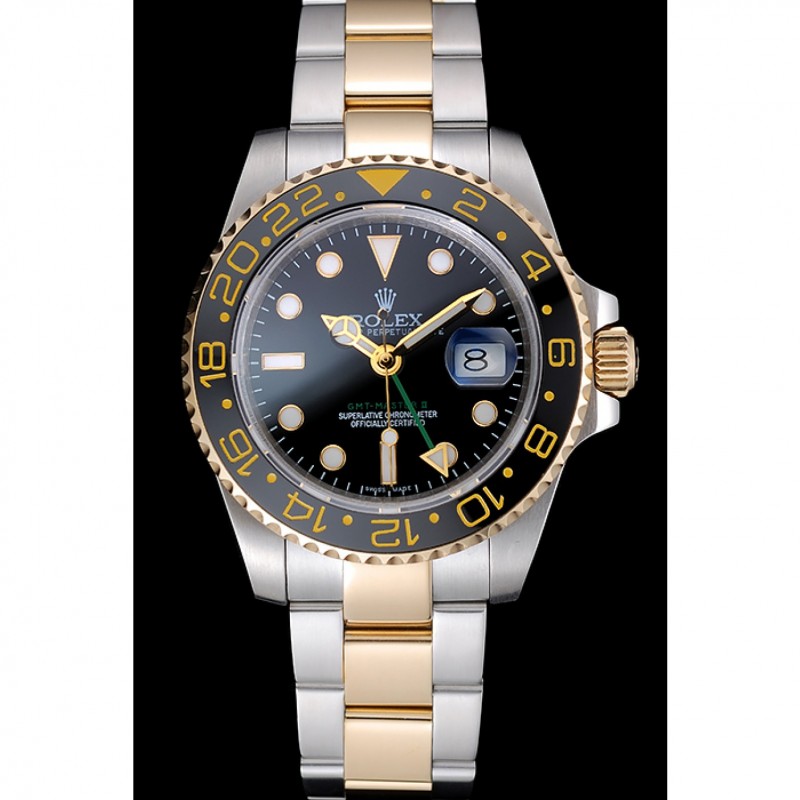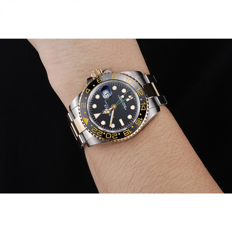 Bezel:18k en céramique noire en or rose plaqué lunette cutwork avec chiffres arabes marqueur 24 heures