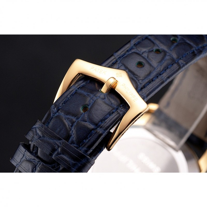 Patek Philippe Calatrava Bleu Date gaufrée Cadran boîtier en or bleu bracelet en cuir