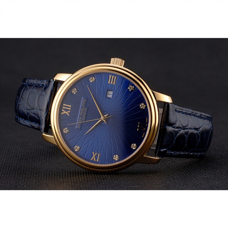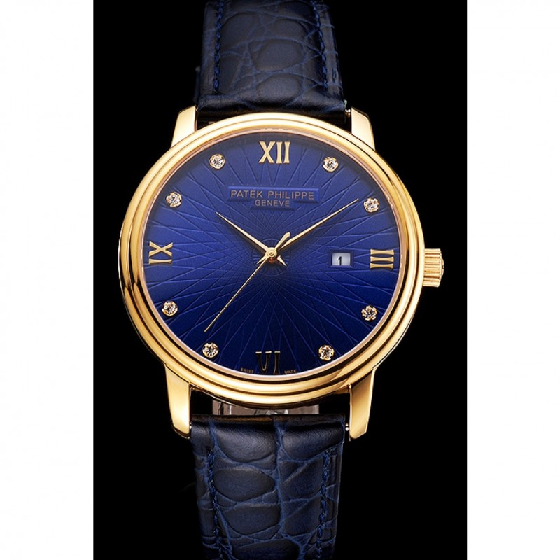 Be the first to review “Patek Philippe Calatrava Bleu Date gaufrée Cadran boîtier en or bleu bracelet en cuir”