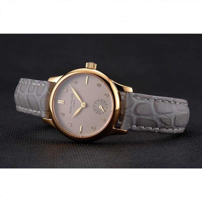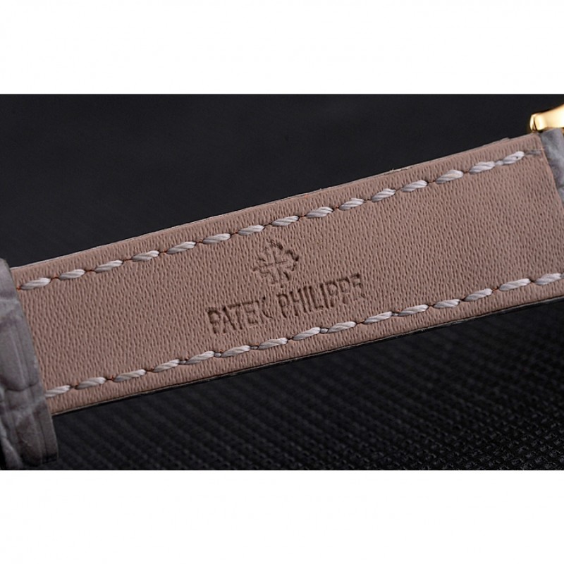 Bracelet:Patek Philippe et logo chaleur embossé bracelet crocodile en cuir gris avec Patek Philippe et le logo inscrit or jaune 18 carats plaqué fermoir crochet boucle