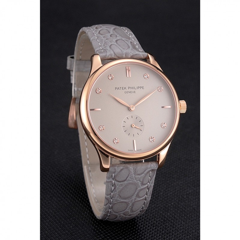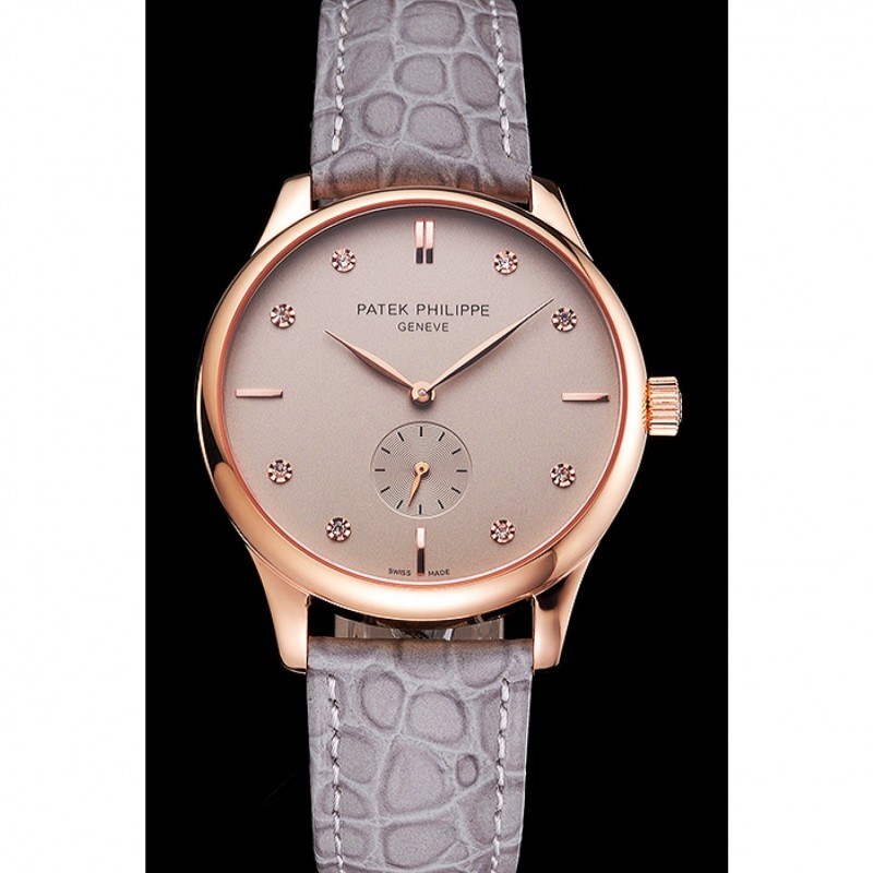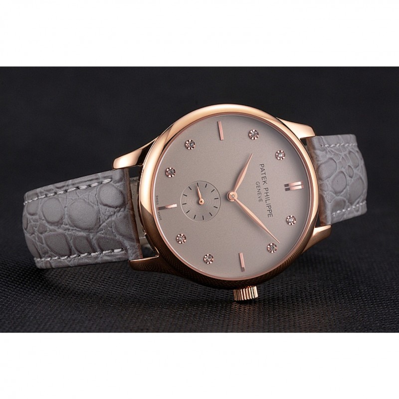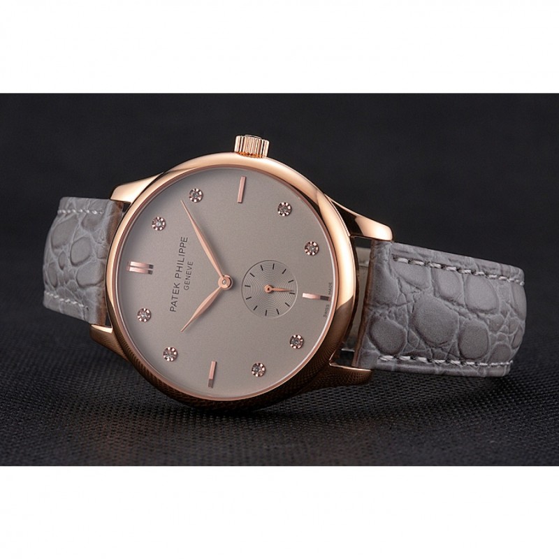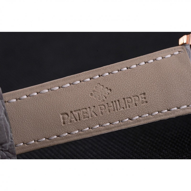 Bracelet:Patek Philippe et la chaleur de logo en relief sangle crocodile en cuir gris avec Patek Philippe et logo inscrit 18k rose plaqué or fermoir crochet-boucle