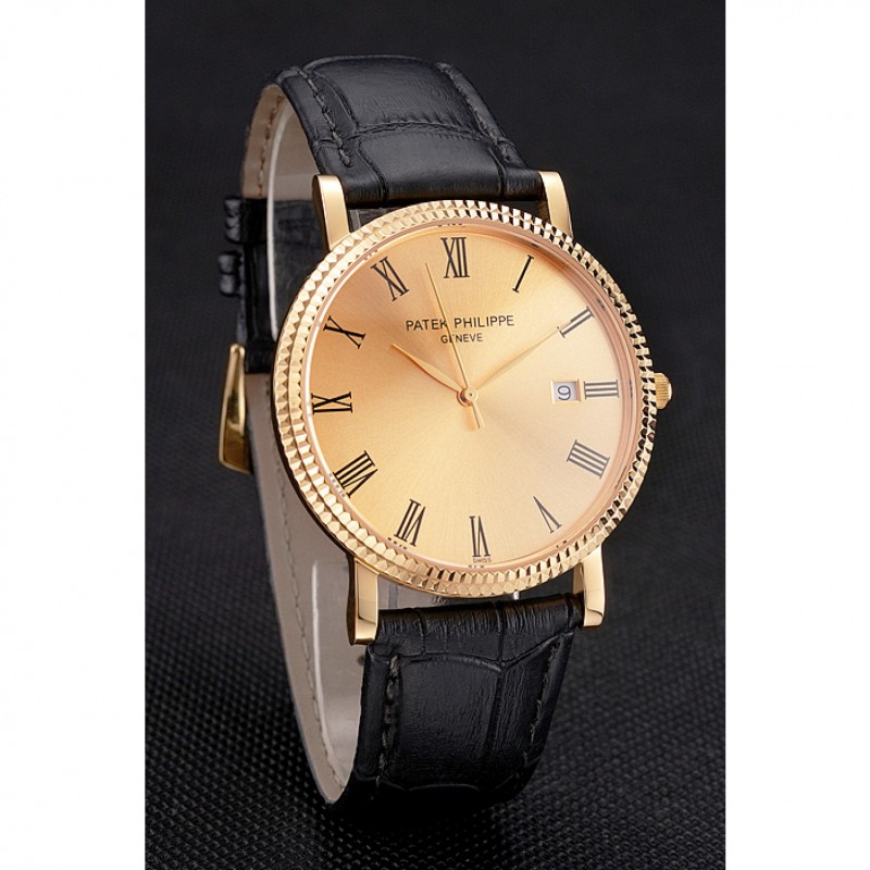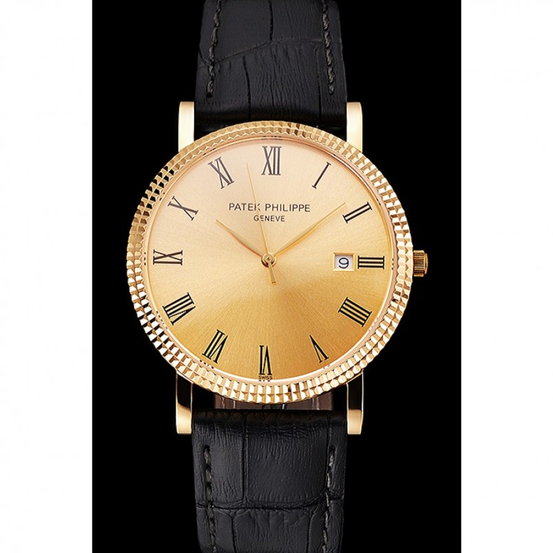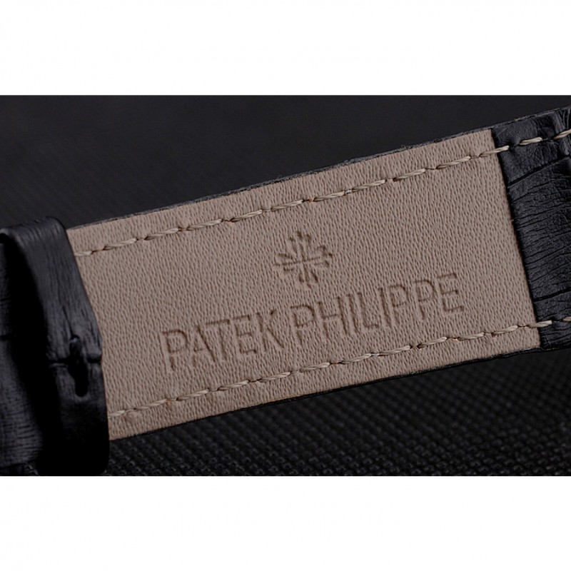 Bracelet:logo et Patek Philippe bracelet en cuir de crocodile noir embossé chaleur avec logo et Patek Philippe gravé or jaune 18 carats plaqué fermoir crochet boucle