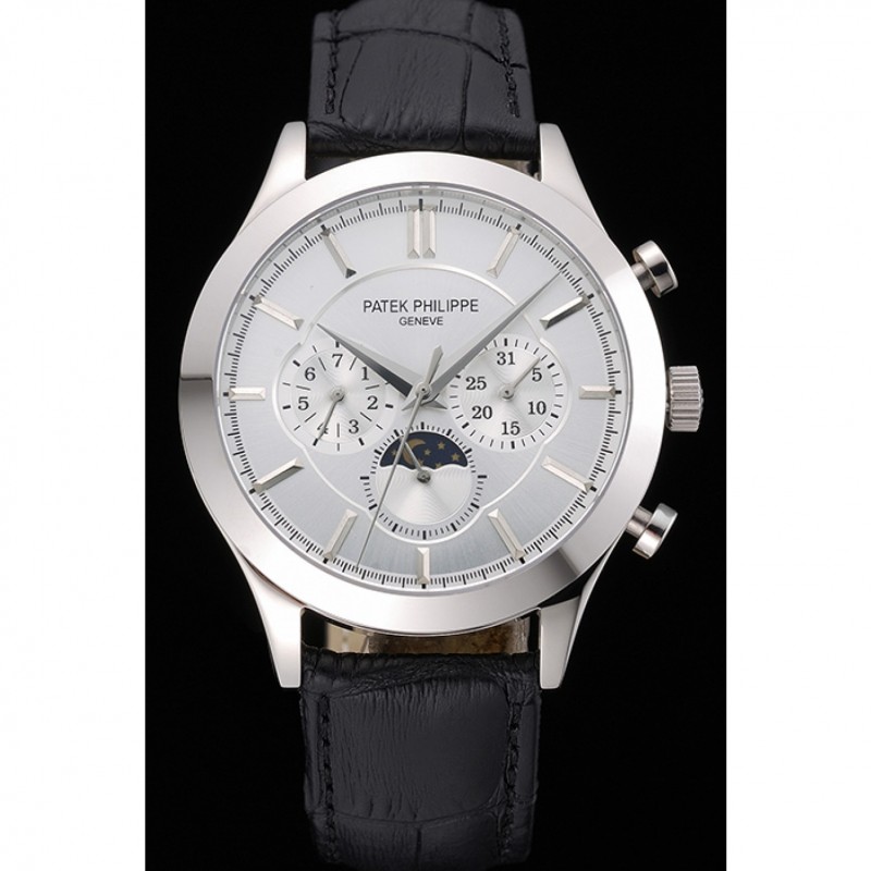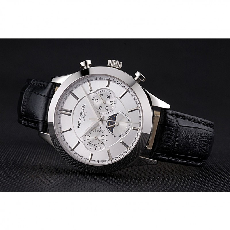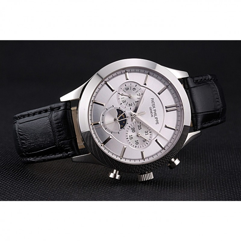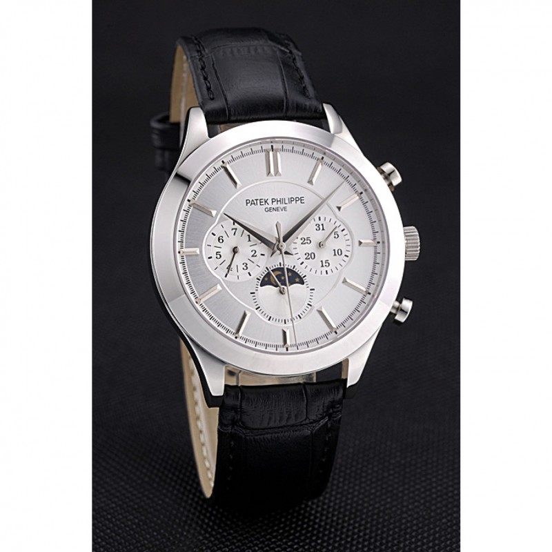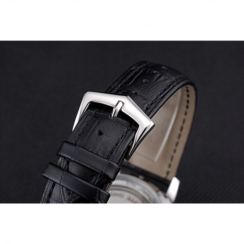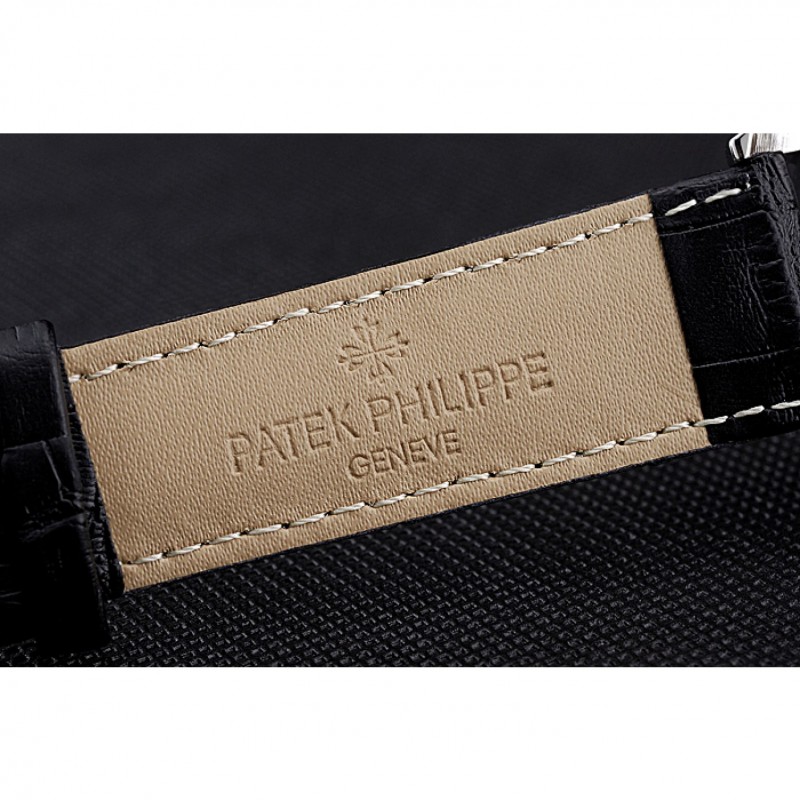 Bracelet:Patek Philippe Geneve et sangle de chaleur en crocodile noir gaufré logo avec fermoir en acier inoxydable poli crochet-boucle