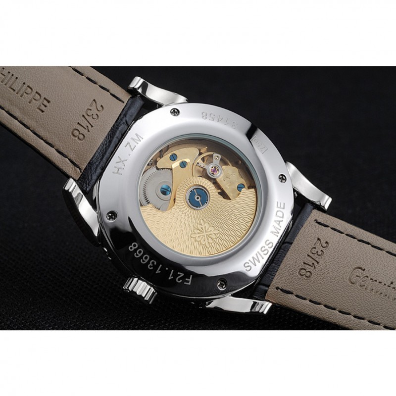Retour:acier inoxydable poli vissé retour avec le centre-révélateur mécanique transparents et la gravure de logo Patek Philippe