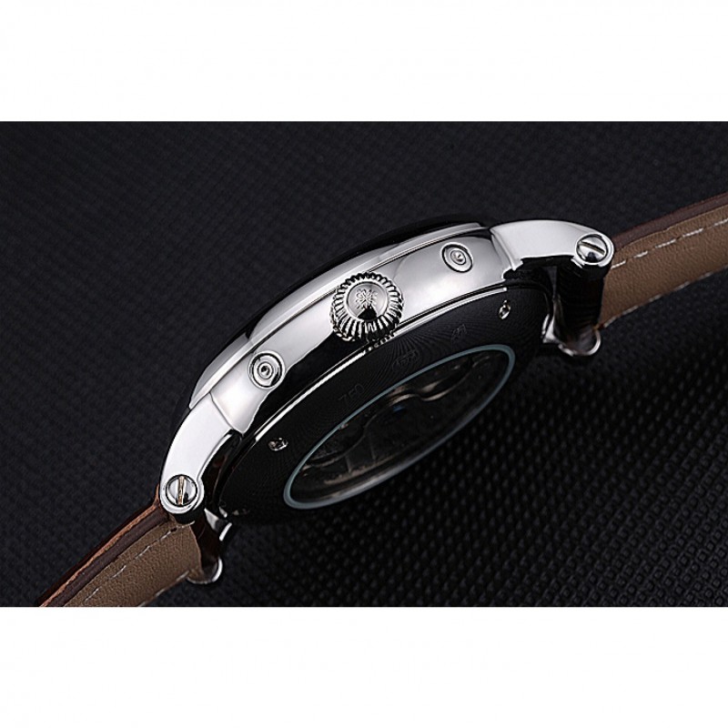 Retour:en acier inoxydable poli encliquetable à l’arrière avec la mécanique transparentes révélant centre et gravure Patek Philippe Geneve