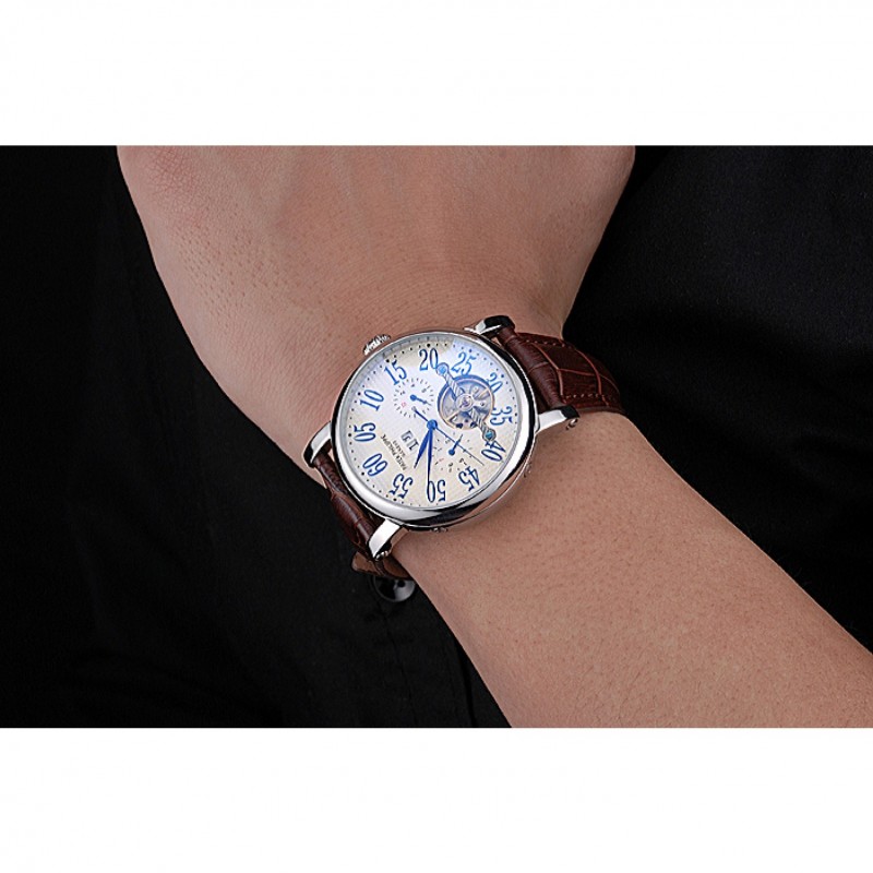 Bracelet:logo et Patek Philippe Geneve chaleur bracelet en cuir de crocodile brun relief avec fermoir en acier inoxydable poli crochet-boucle