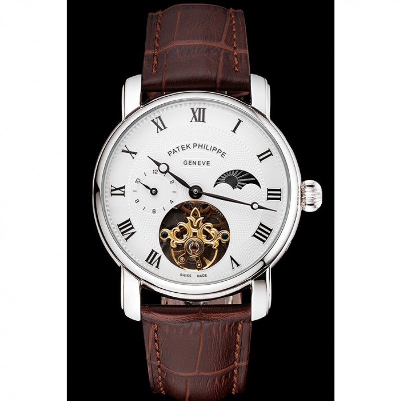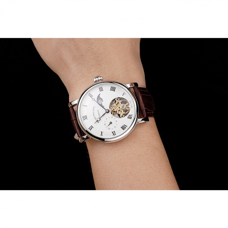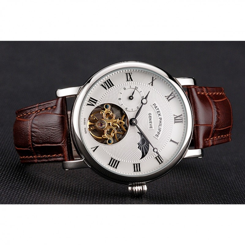 Bracelet:Logo et Patek Philippe chaleur embossé bracelet crocodile en cuir marron avec le logo et Patek Philippe gravé en acier inoxydable poli fermoir crochet boucle