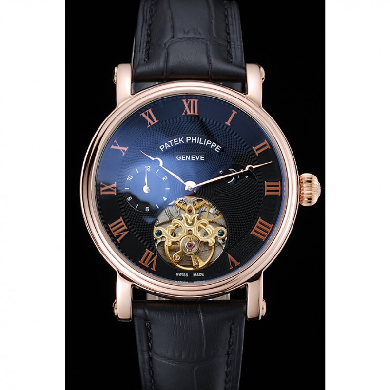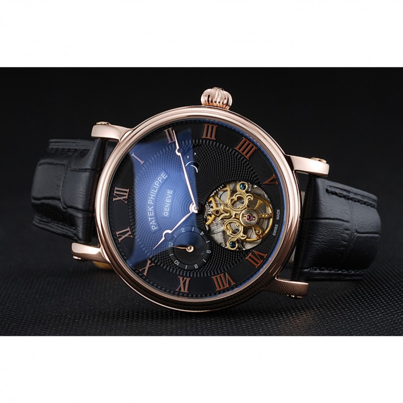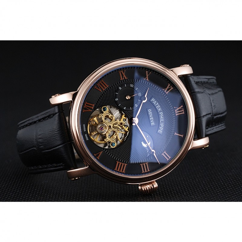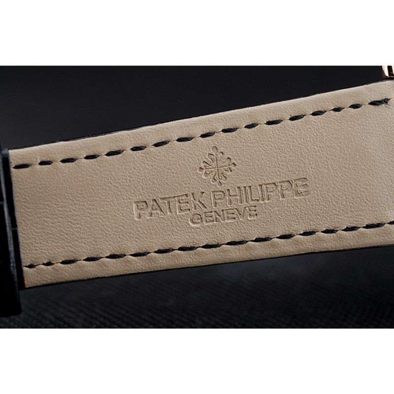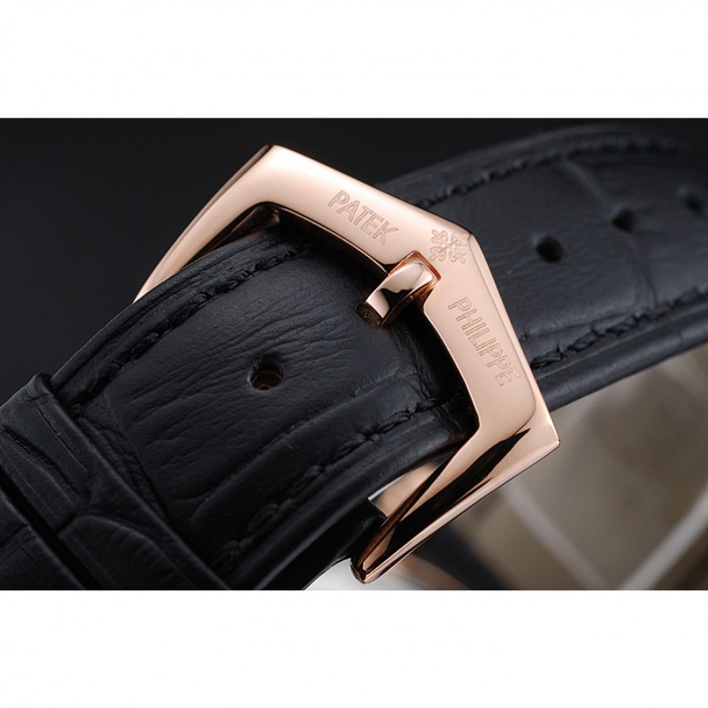 Bracelet:logo et Patek Philippe chaleur en relief crocodile noir bracelet en cuir avec logo et Patek Philippe gravés 18k rose-or plaqué fermoir crochet-boucle