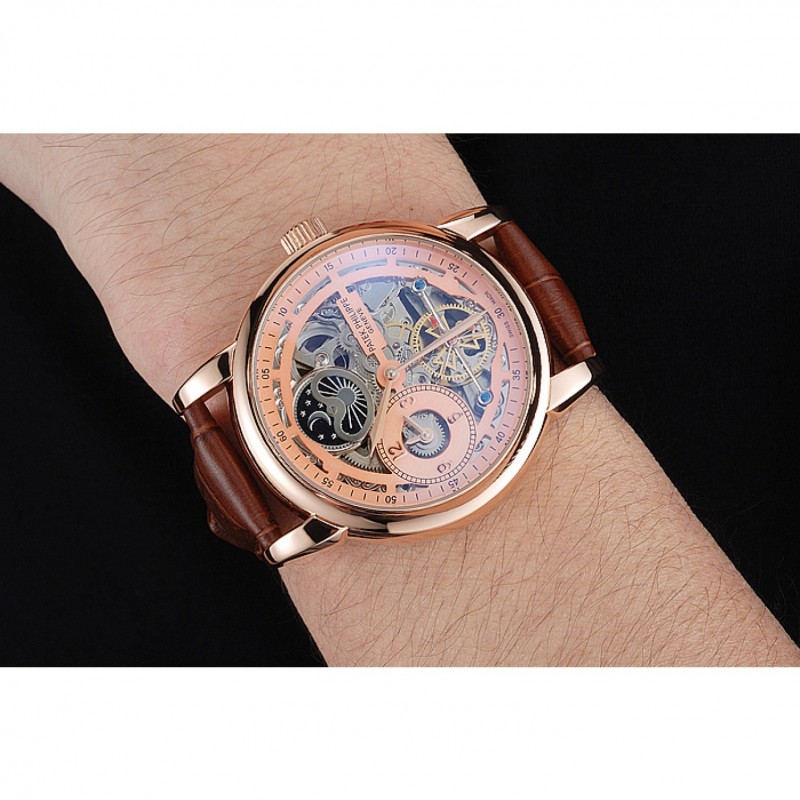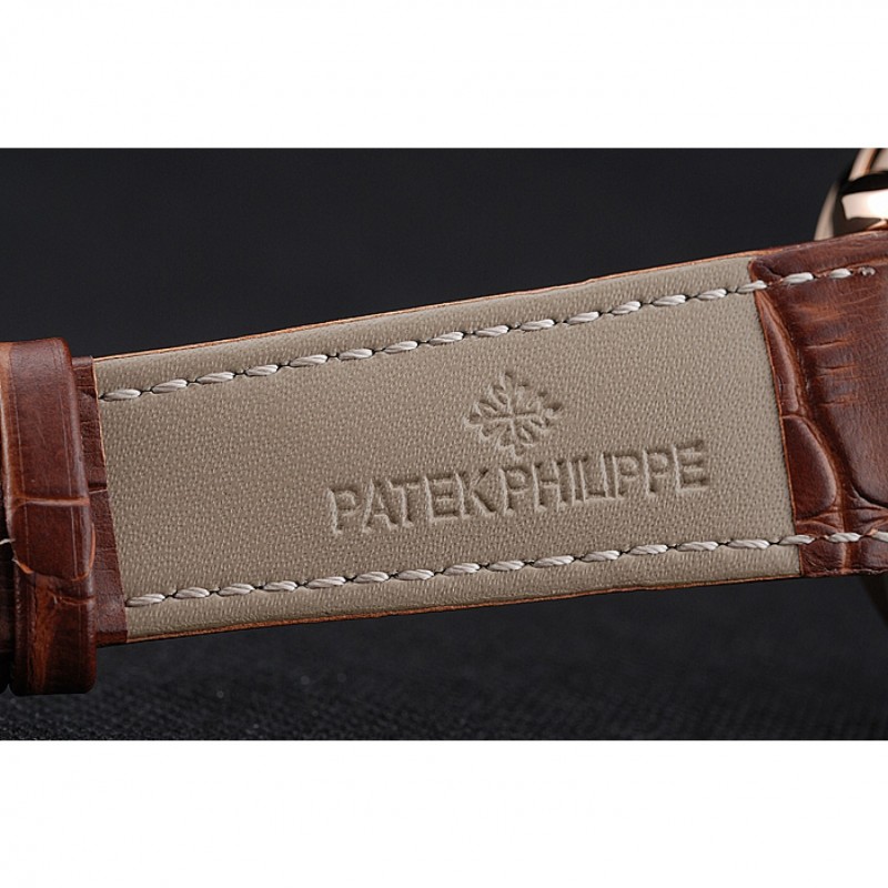 Bracelet:Patek Philippe Geneve chaleur en relief sangle crocodile en cuir marron avec logo et Patek Philippe inscrit 18k rose plaqué or fermoir crochet-boucle