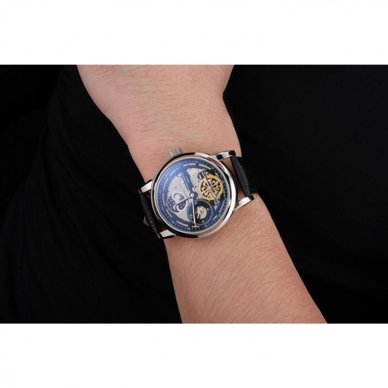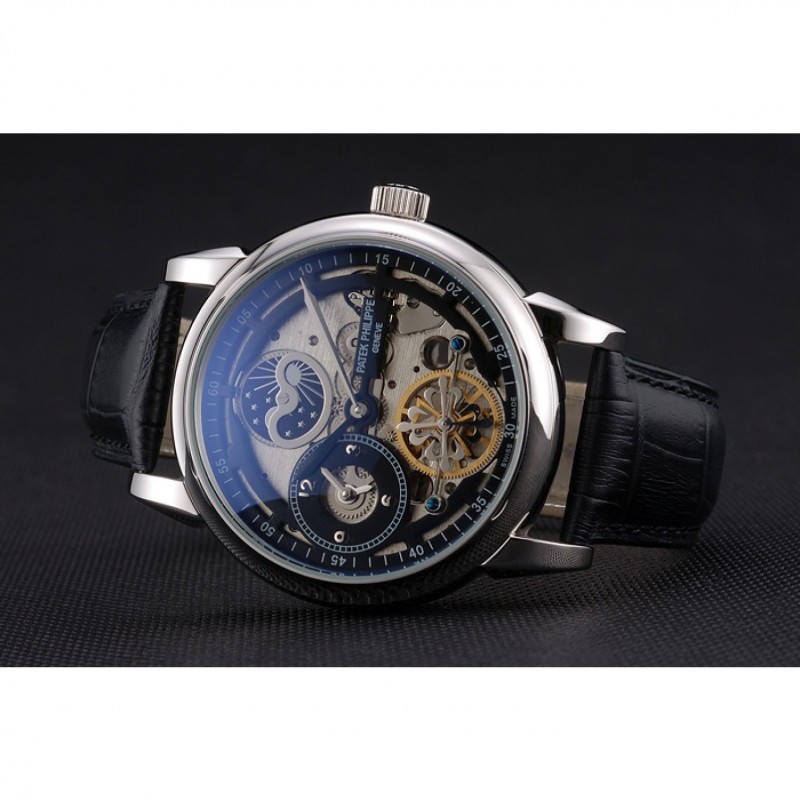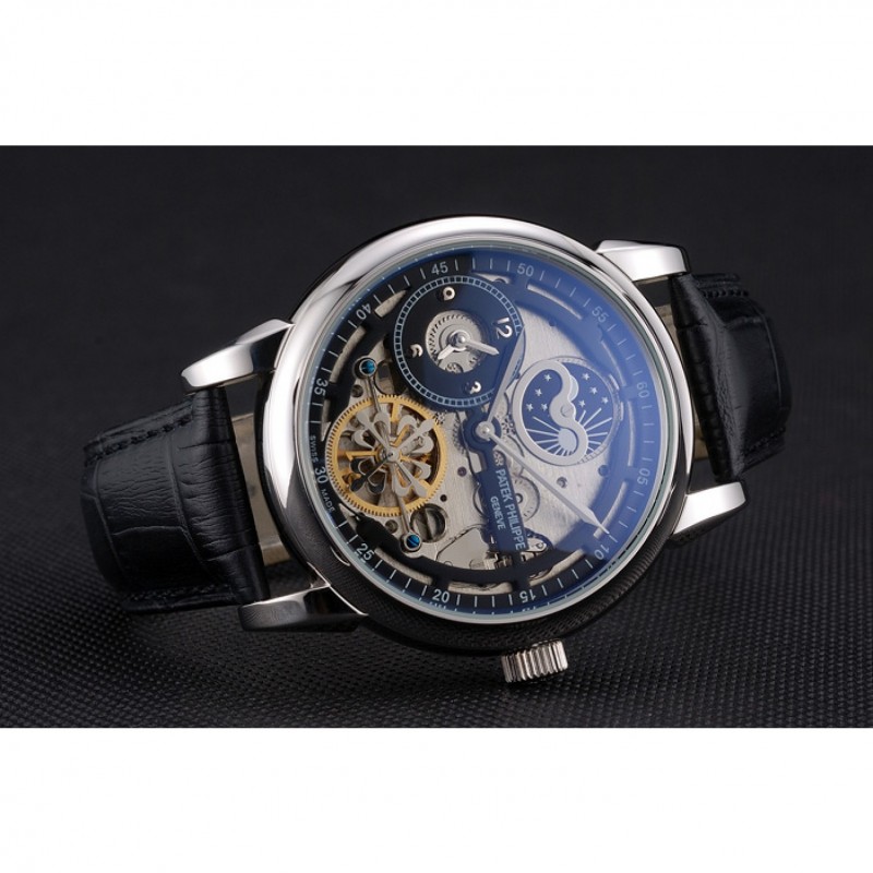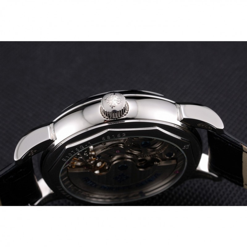 Retour:acier inoxydable poli pression cerclées -dans arrière avec la mécanique transparents centre révélateur et gravures Patek Philippe