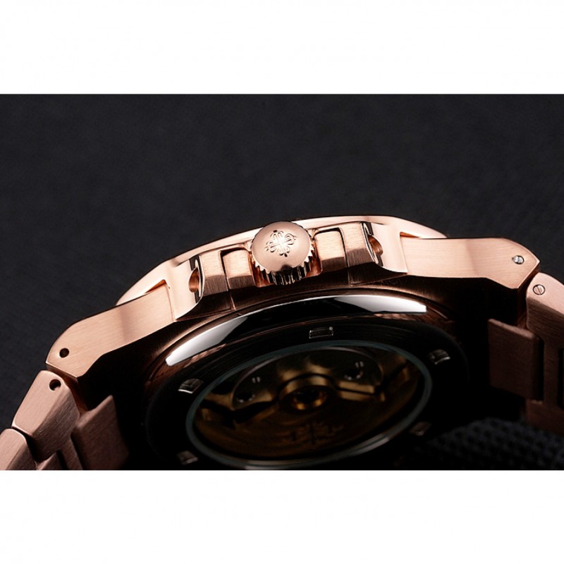 Retour:composant logiciel enfichable dans le dos en acier inoxydable poli avec la mécanique révélant transparente centre et gravure logo Patek Philippe