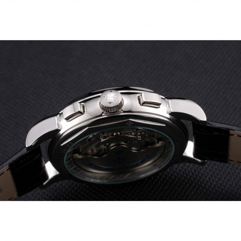 Retour:acier inoxydable poli pression cerclées -dans arrière avec la mécanique transparents centre révélateur et gravures Patek Philippe