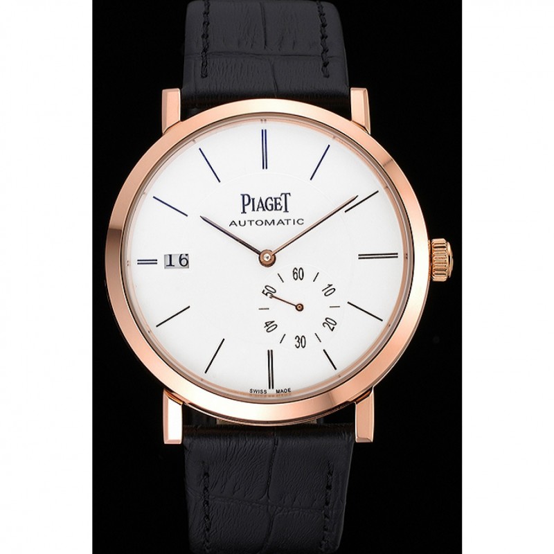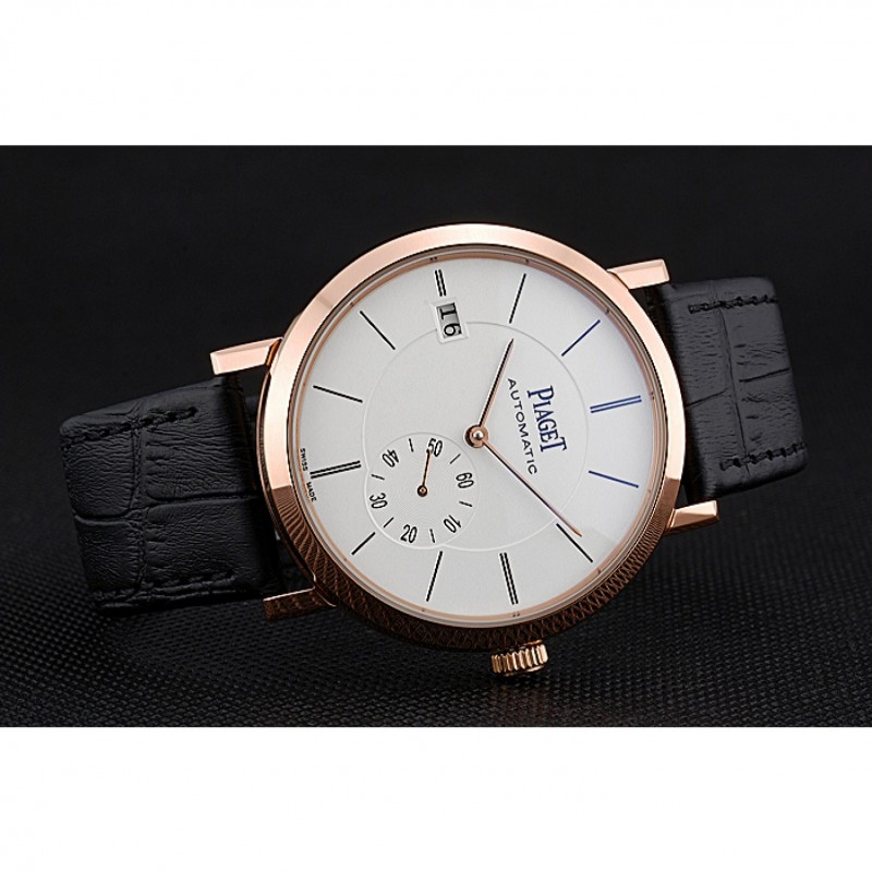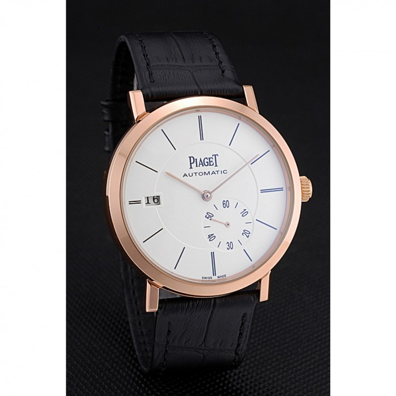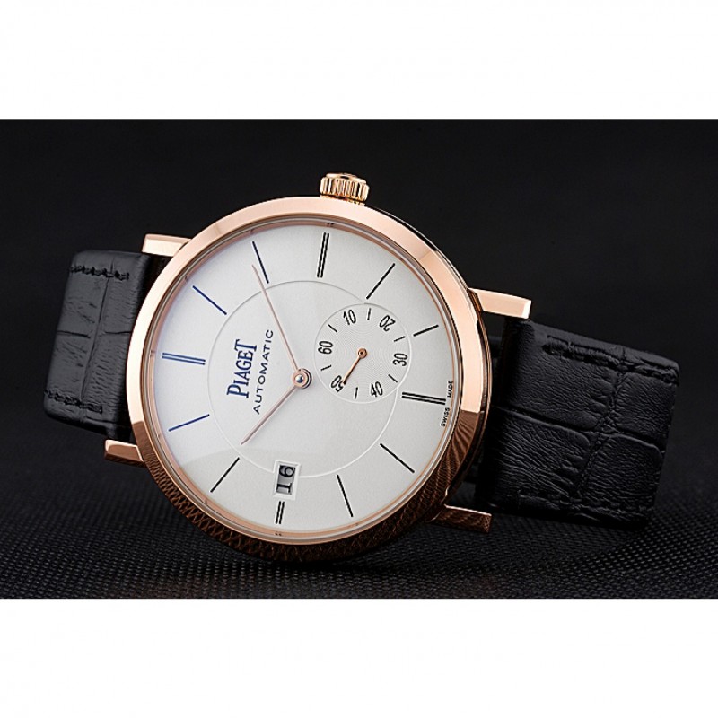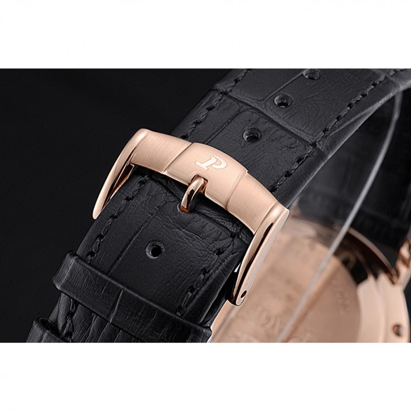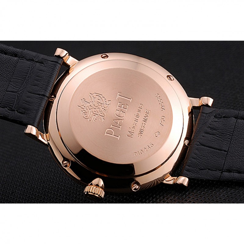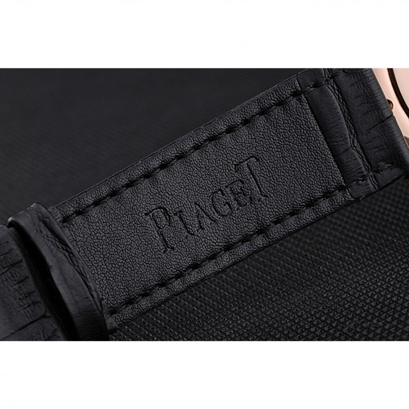 Bracelet:chaleur Piaget en relief crocodile noir bracelet en cuir avec Piaget logo 18k gravé rose plaqué or fermoir crochet-boucle