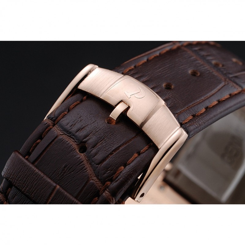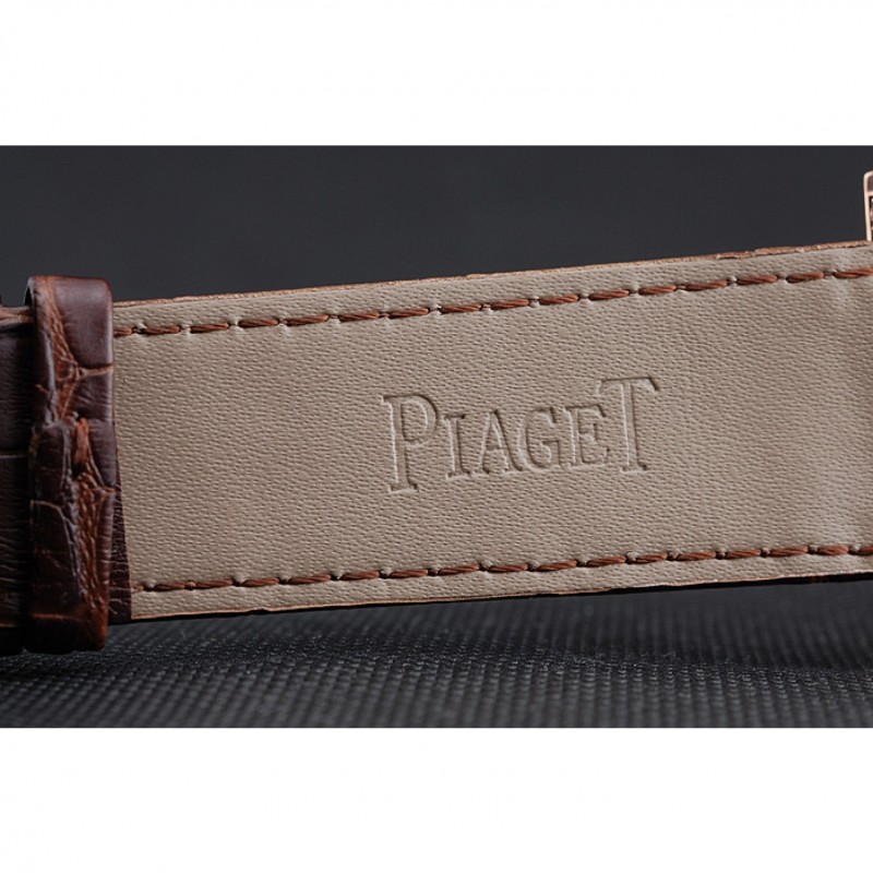 Bracelet:Piaget chaleur bracelet en cuir de crocodile brun relief avec Piaget logo 18k gravé rose plaqué or fermoir crochet-boucle