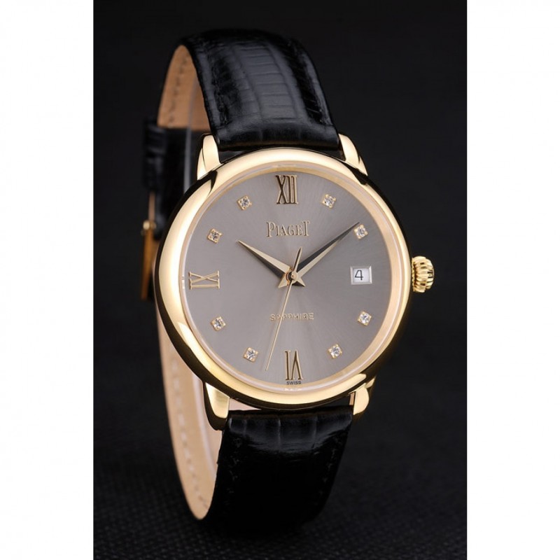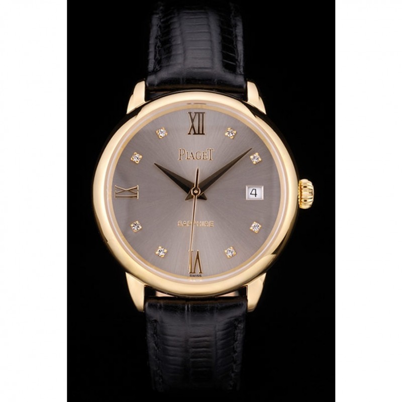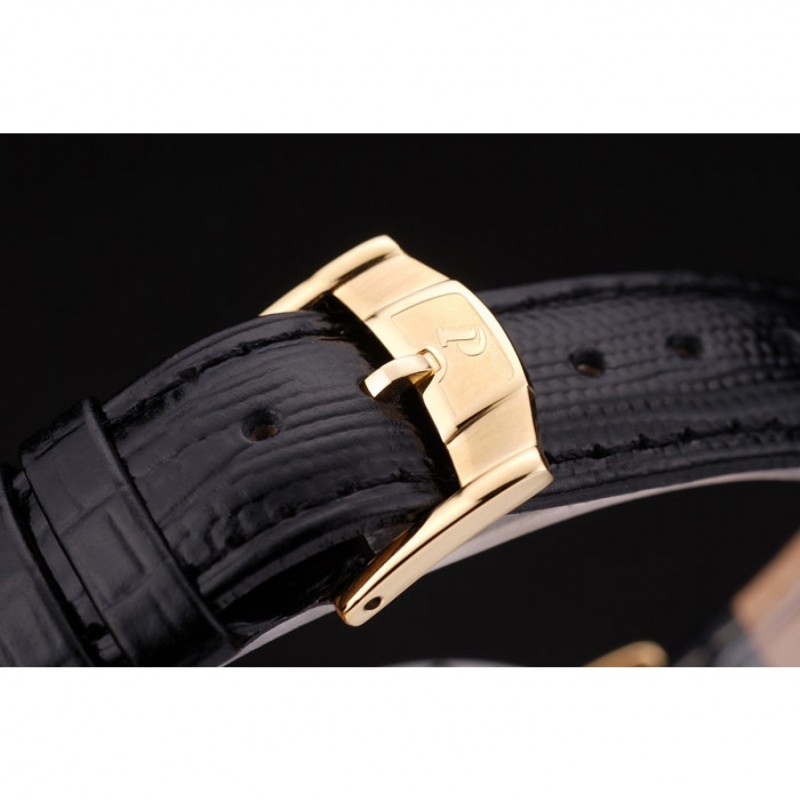 Bracelet:Piaget embossé chaleur bracelet en cuir de crocodile noir avec logo gravé or jaune 18 carats plaqué fermoir crochet boucle