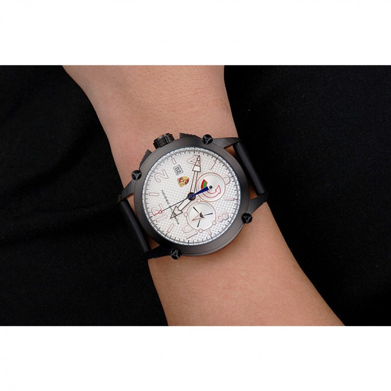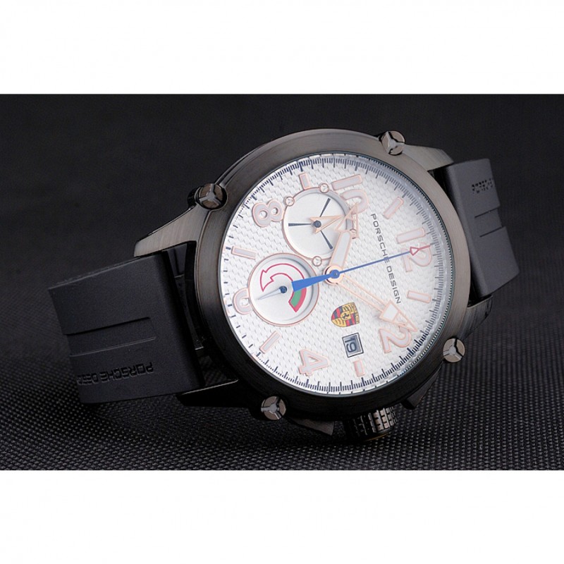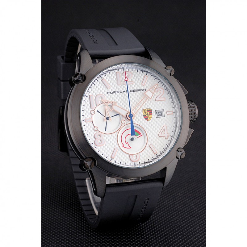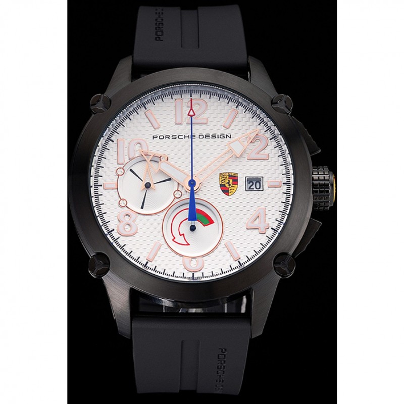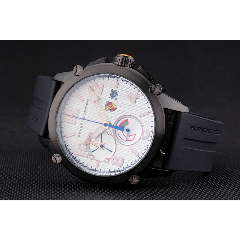Bracelet:Porche conception et de la chaleur code produit gaufré bracelet en caoutchouc noir avec Porche gravé fermoir crochet-boucle placage ionique