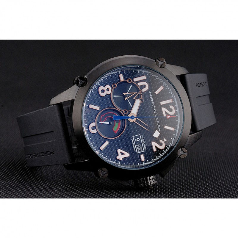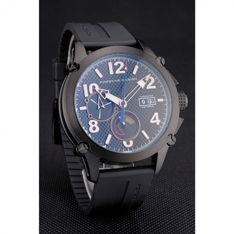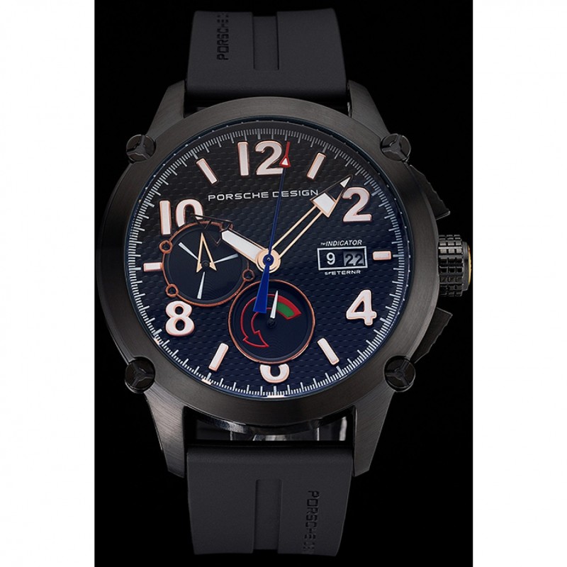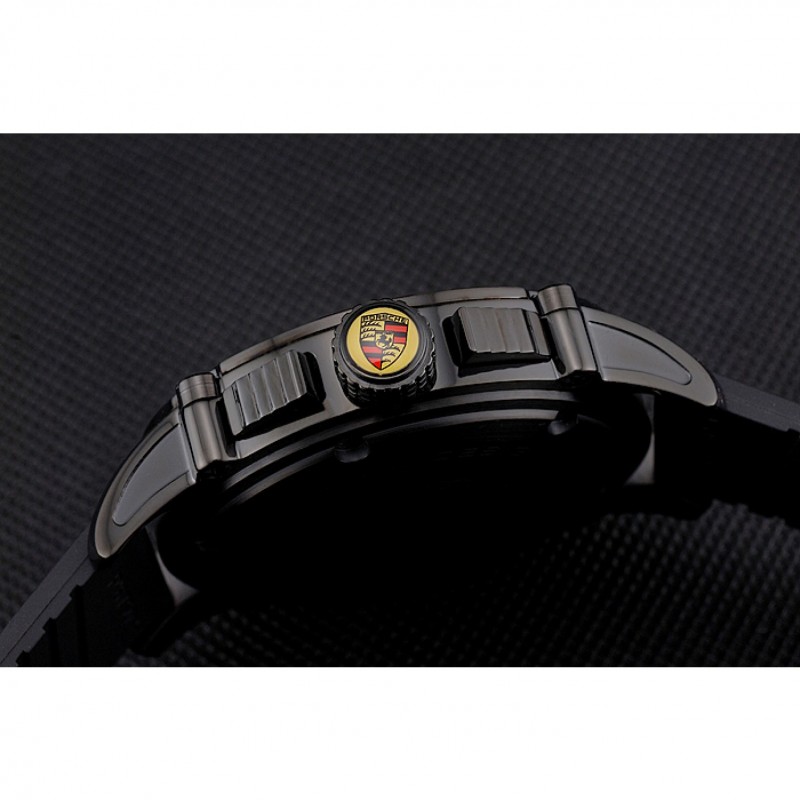 Bracelet:Porche conception et de la chaleur code produit gaufré bracelet en caoutchouc noir avec Porche gravé fermoir crochet-boucle placage ionique