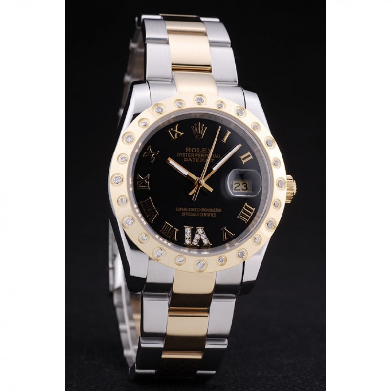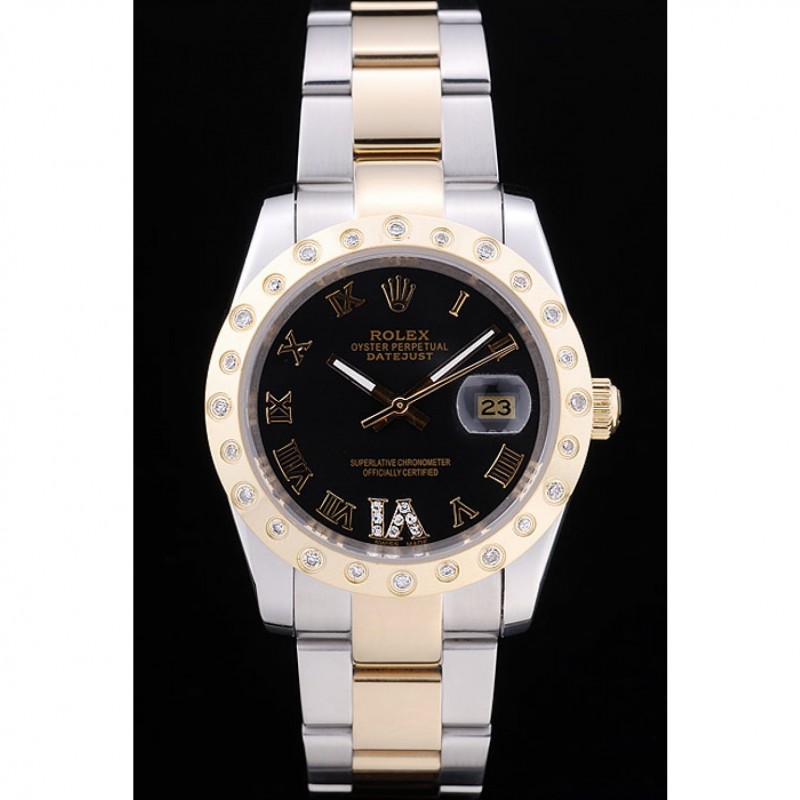 Bracelet:brossé en acier inoxydable et or jaune bracelet lien avec boucle déployante logo Rolex
