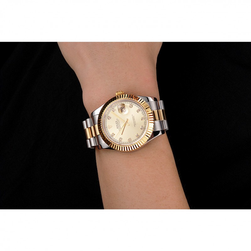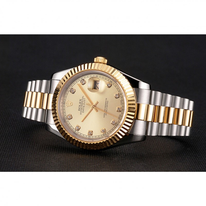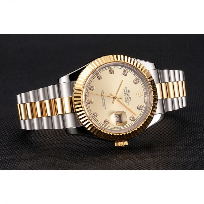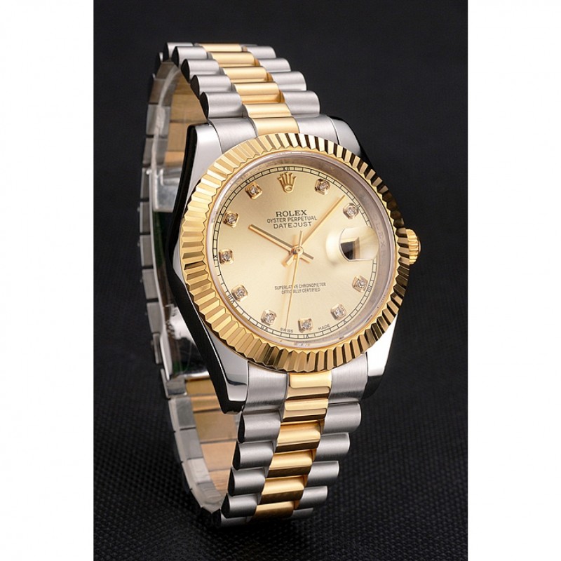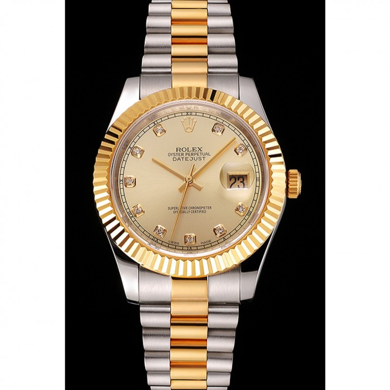 Bracelet:en acier inoxydable brossé et or jaune 18 carats bracelet lien plaqué or avec le logo Rolex gravé fois en boucle caché