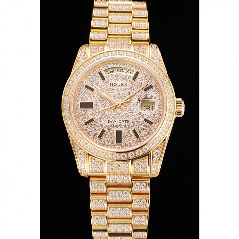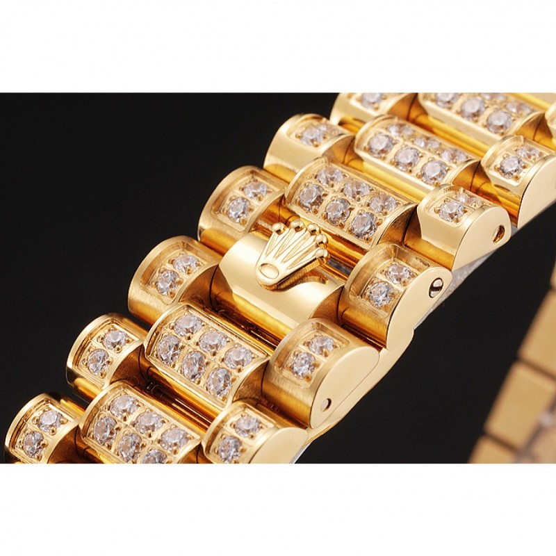 Bracelet:Diamond incrustée 18k lien plaqué or jaune bracelet avec or jaune 18 carats plaqué logo Rolex gravé fermoir caché