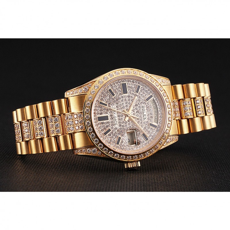 Bracelet:Diamond incrustée 18k lien plaqué or jaune bracelet avec or jaune 18 carats plaqué logo Rolex gravé fermoir caché
