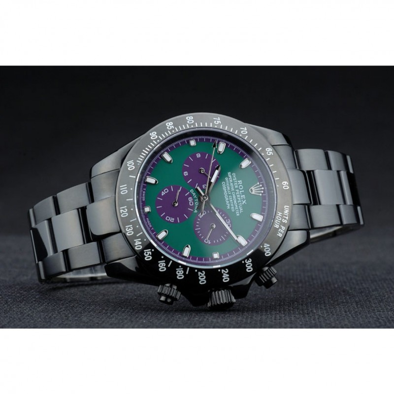 ロレックス デイトナ ブラック イオンメッキ タキメーター ブラック ステンレススティールブレスレット グリーンダイヤル 80246。