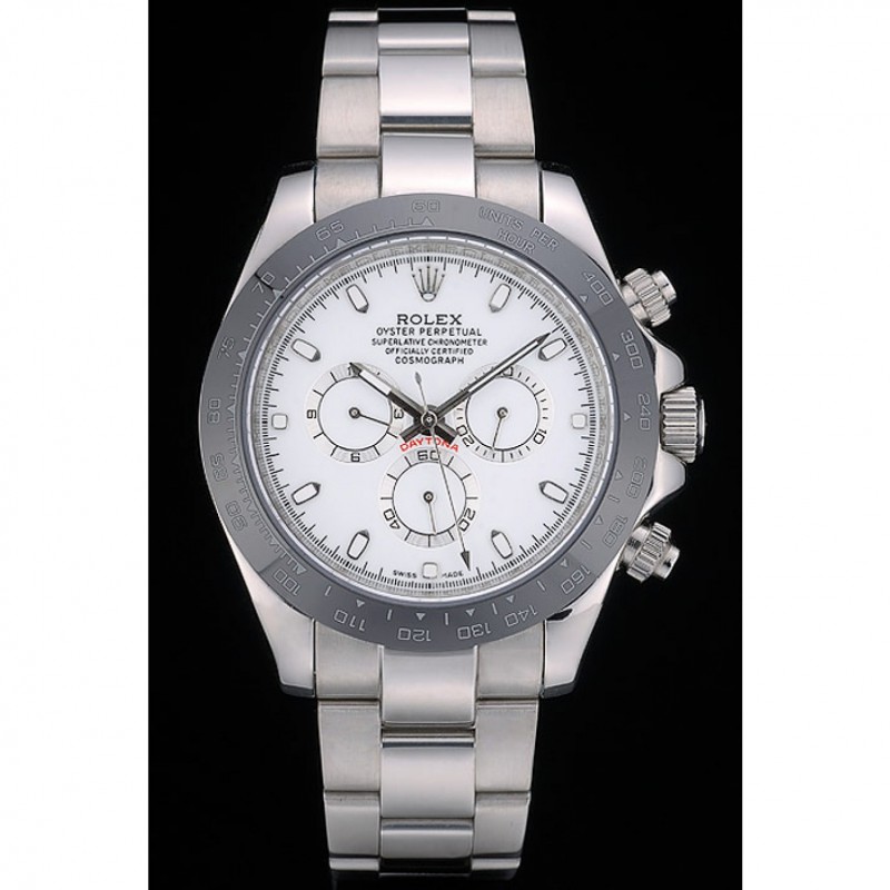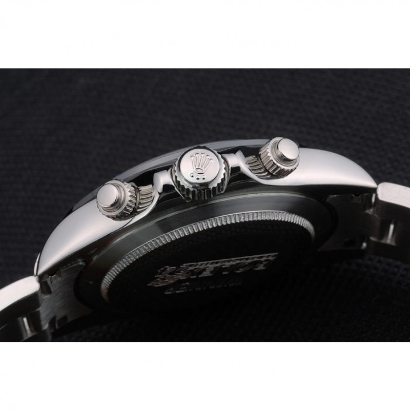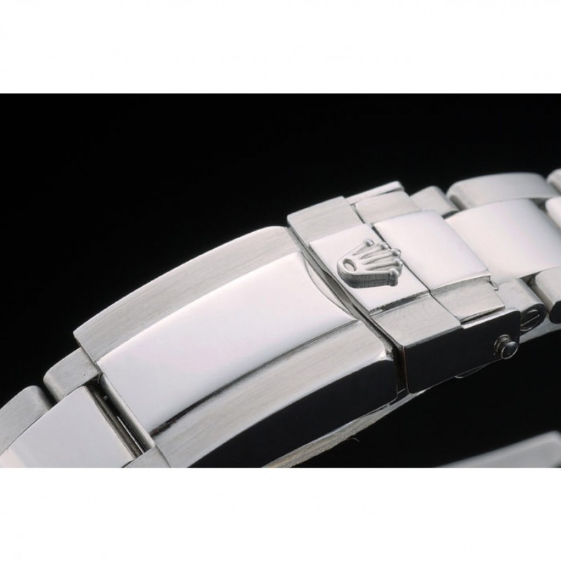 Couronne:couronne en acier inoxydable cutwork poli avec Rolex logo et une couronne de bouton-poussoir de chaque côté de celui-ci