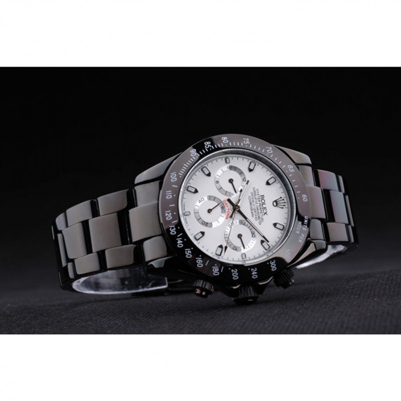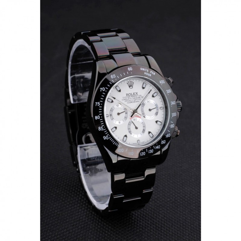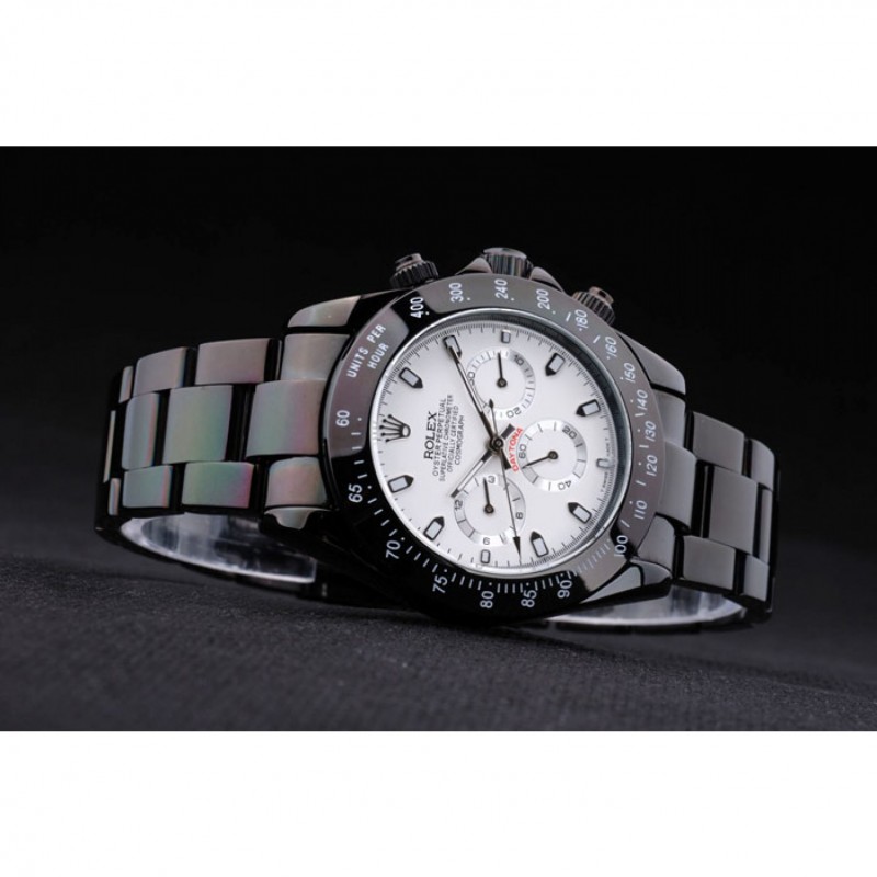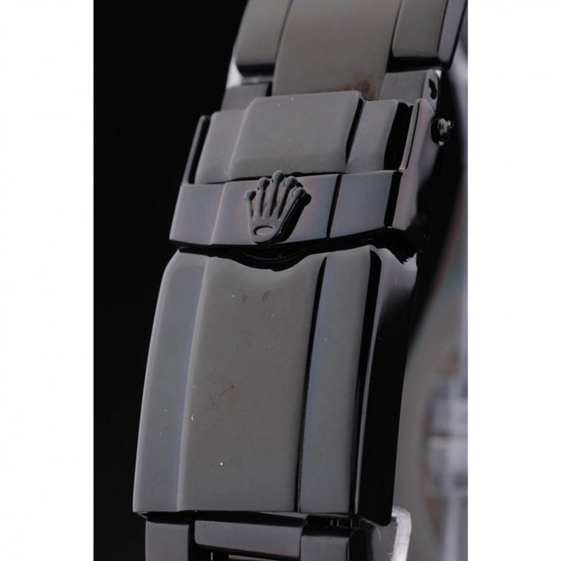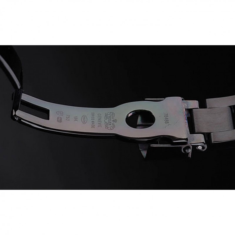 Bracelet:Noir émaille bracelet à maillons en acier inoxydable avec boucle déployante de gravure Rolex affichant le logo Rolex