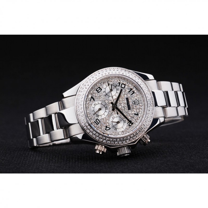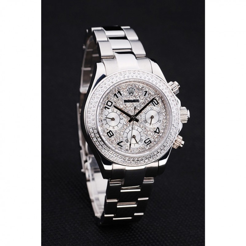 Couronne :couronne en acier inoxydable cutwork poli avec Rolex logo et deux couronnes supplémentaires de chaque côté de celui-ci