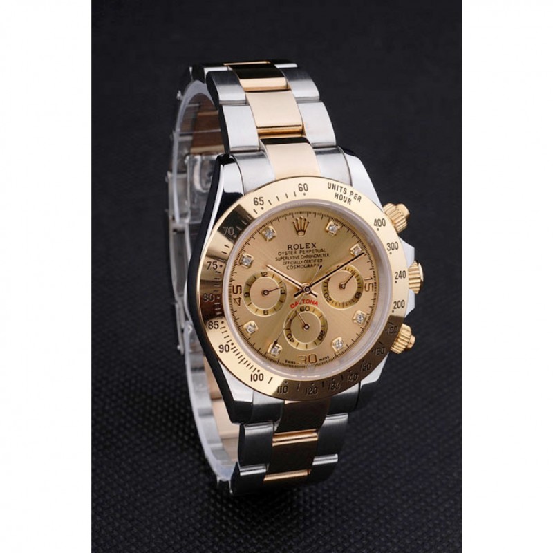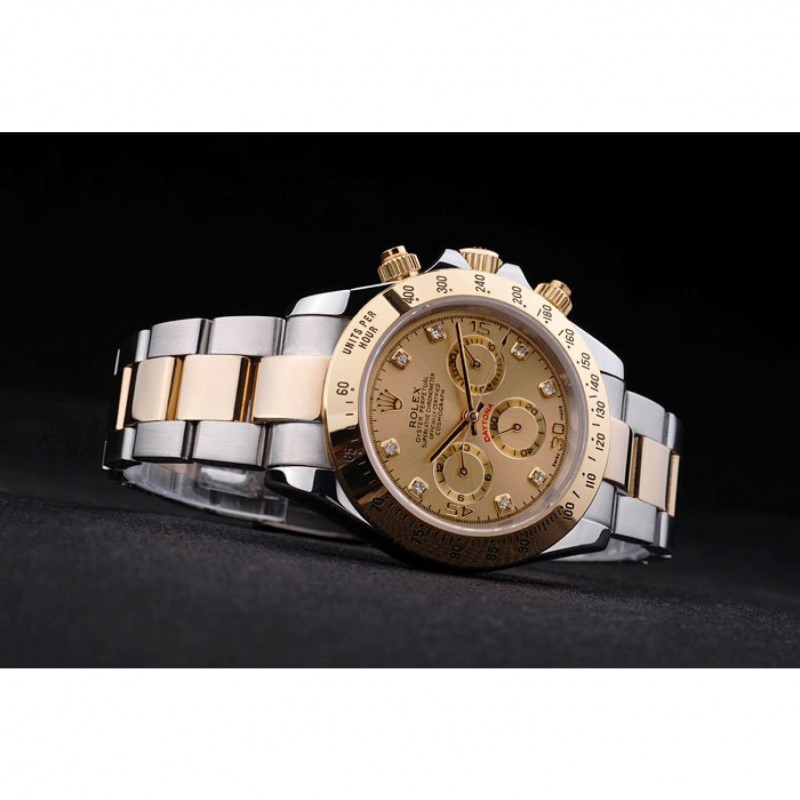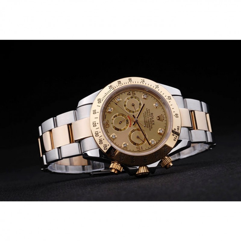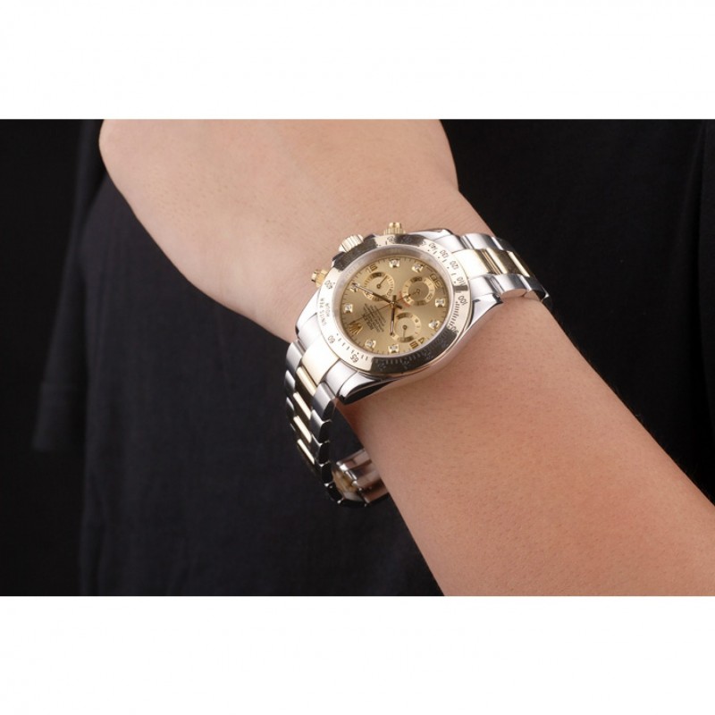 Bracelet:Deux tons brossée et ton or bracelet à maillons en acier inoxydable avec boucle déployante de gravure Rolex affichant le logo Rolex