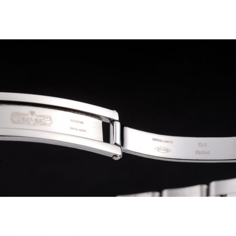 bracelet:poli bracelet à maillons en acier inoxydable avec Rolex gravée dépliante en boucle déployante affichant le logo Rolex