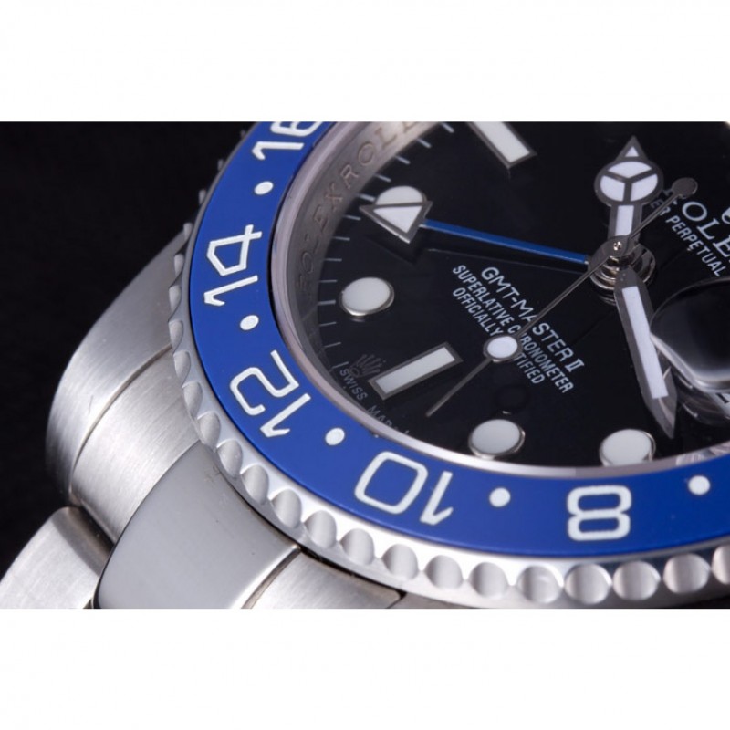 Bezel:Noir et bleu heure en céramique marqué dessus lunette cutwork en acier inoxydable poli