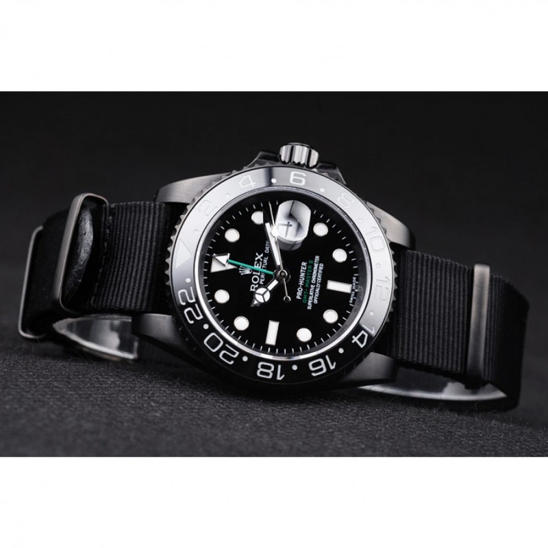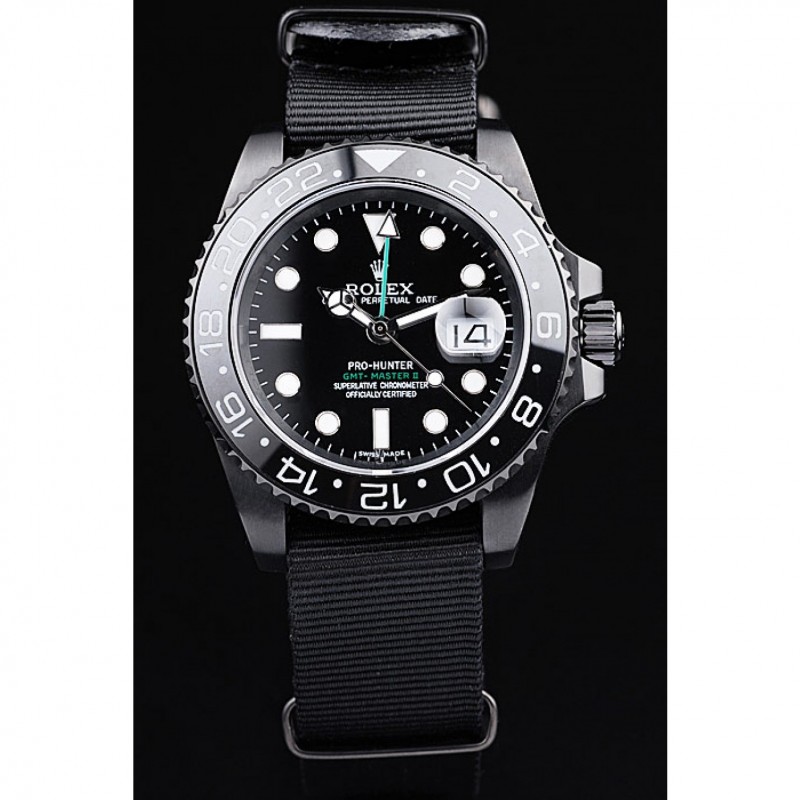 Rolex GMT Master II Suisse Pro-Hunter Noir Bracelet Tissu Noir Cadran