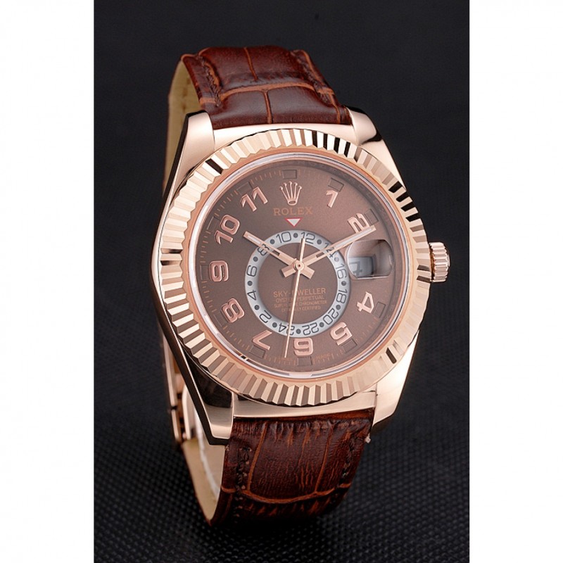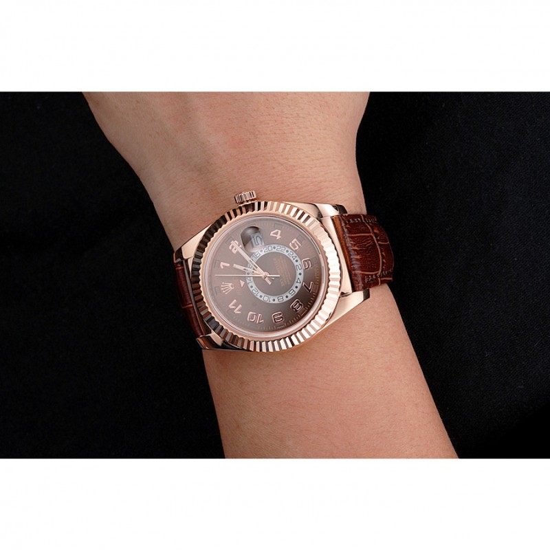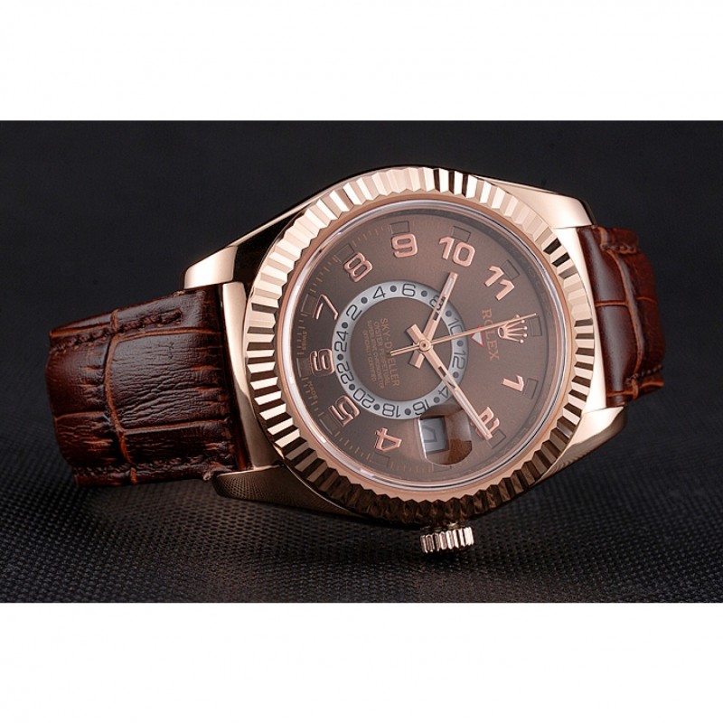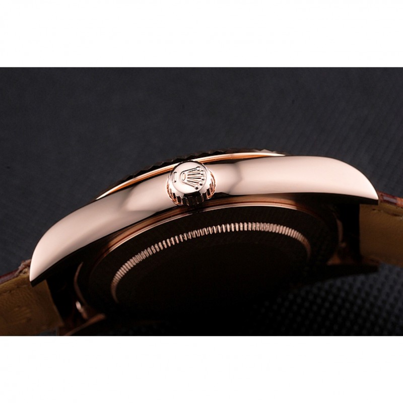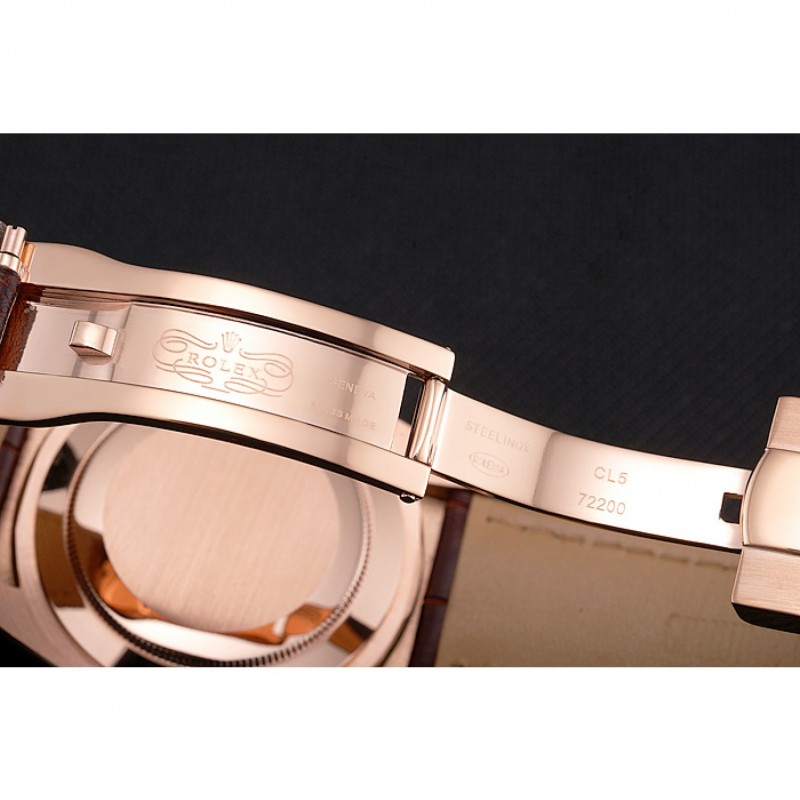 Bracelet:Rolex et la chaleur estampillage crocodile bracelet en cuir brun avec Rolex logo 18k sculpté en or rose plaqué boucle déployante