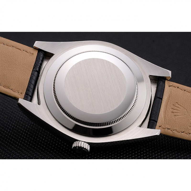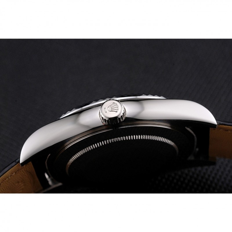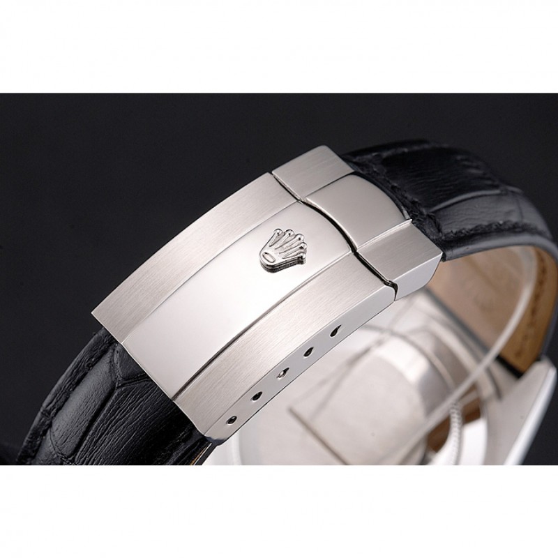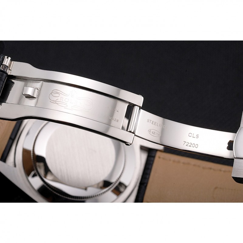Bracelet:Rolex et la chaleur logo en relief crocodile noir bracelet en cuir avec logo Rolex sculpté repliable en acier inoxydable poli fermoir