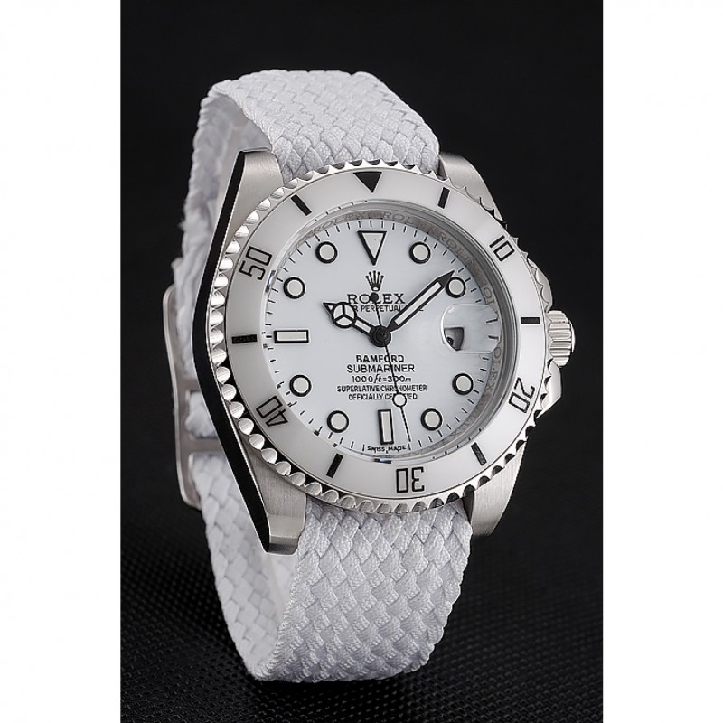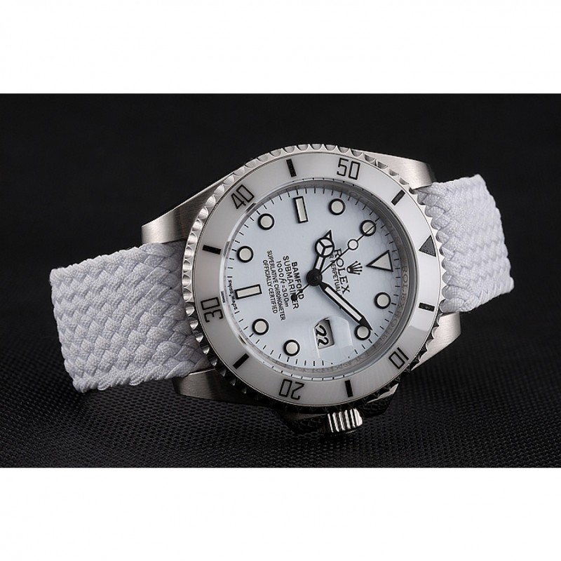 Bracelet:bracelet en tissu blanc avec Rolex et logo gravé crochet en acier inoxydable poli fermoir -buckle