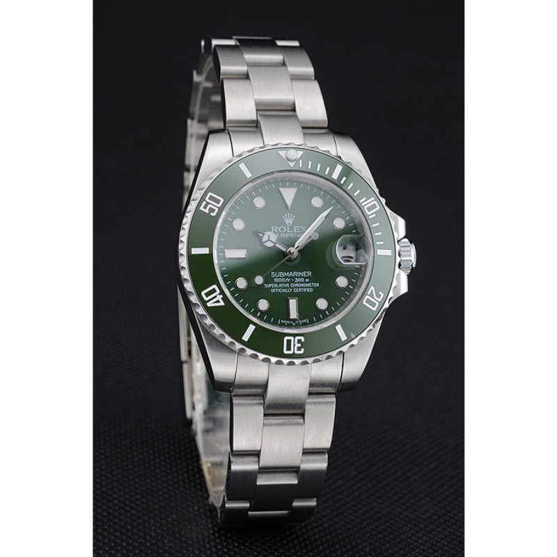 Bezel:vert lunette en acier inoxydable poli en céramique avec des marqueurs minute chiffres arabes
