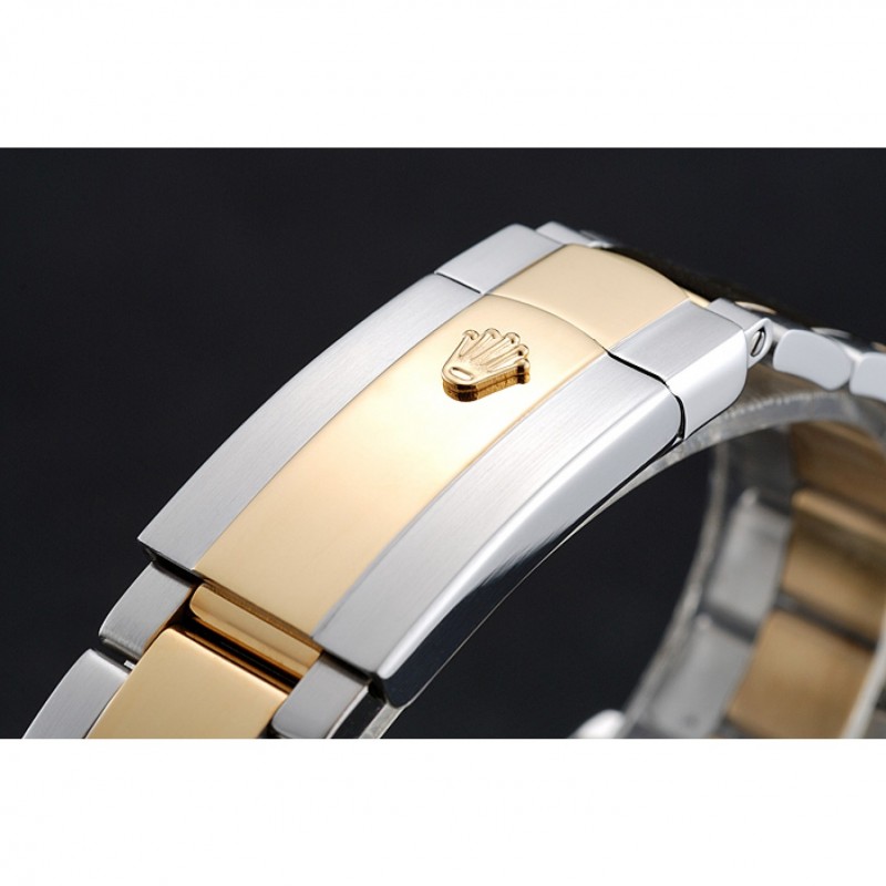 bracelet:en acier inoxydable brossé et bracelet à maillons en or jaune avec gravure Rolex à l’intérieur du fermoir de déploiement et un logo Rolex sur