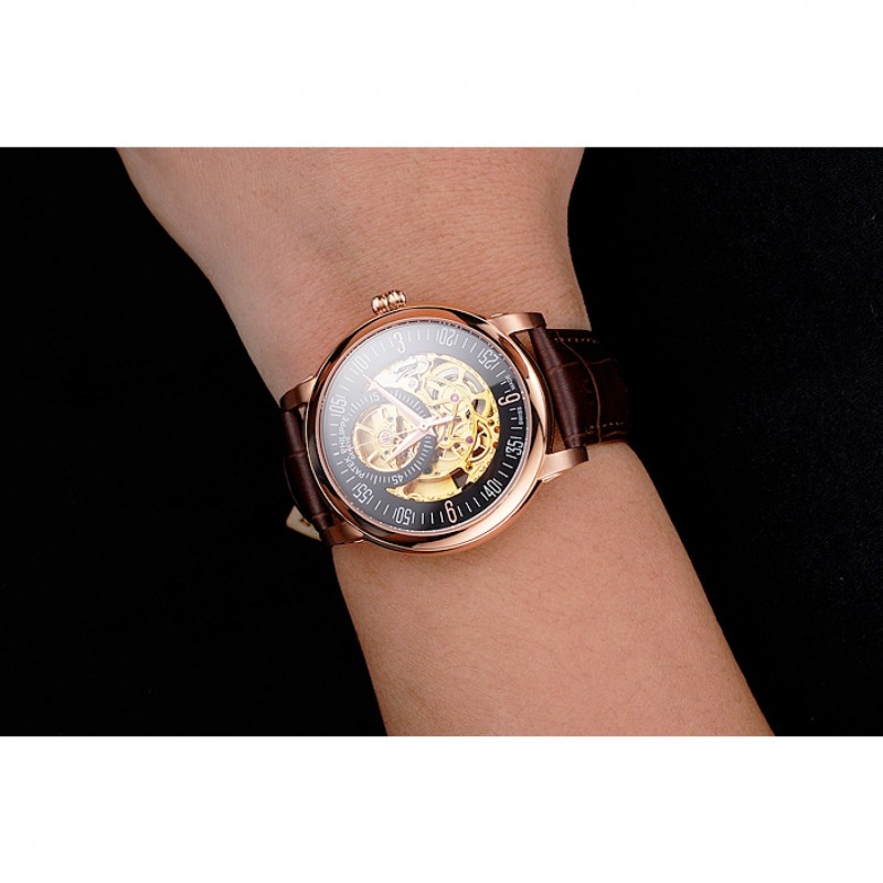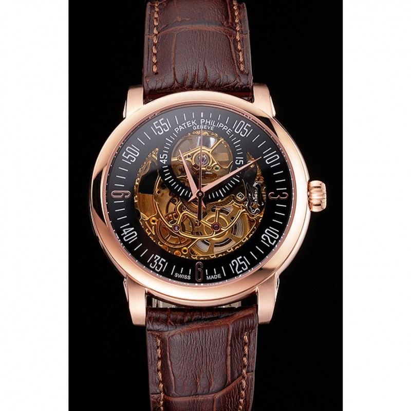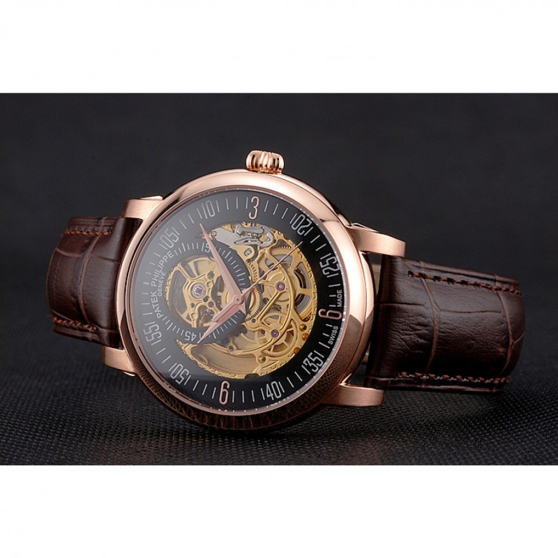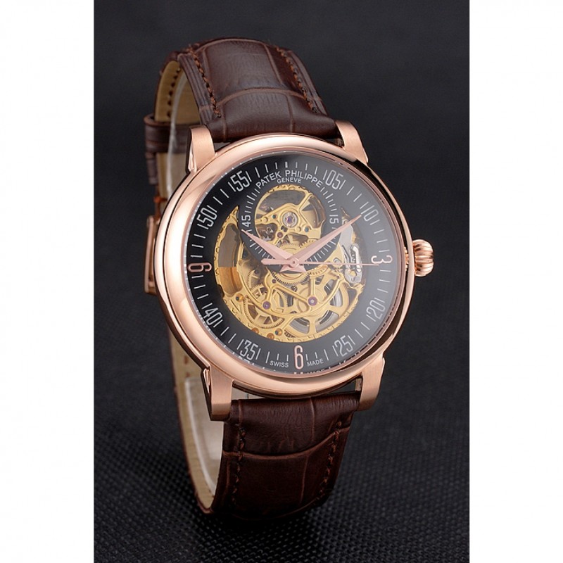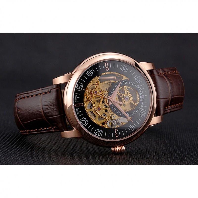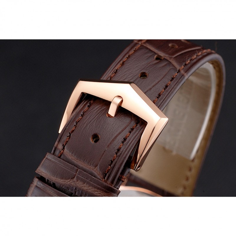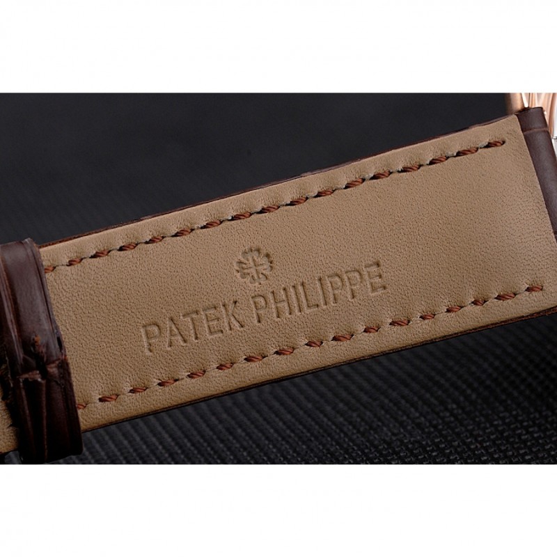Bracelet:Patek Philippe et logo chaleur bracelet en cuir de crocodile brun gravé rose 18K-plaqué or fermoir crochet-boucle