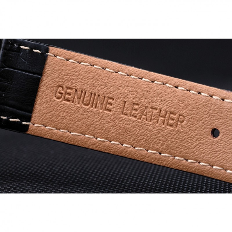 Bracelet:chaleur Piaget embossé bracelet crocodile en cuir noir avec logo gravé fermoir en acier inoxydable poli crochet boucle