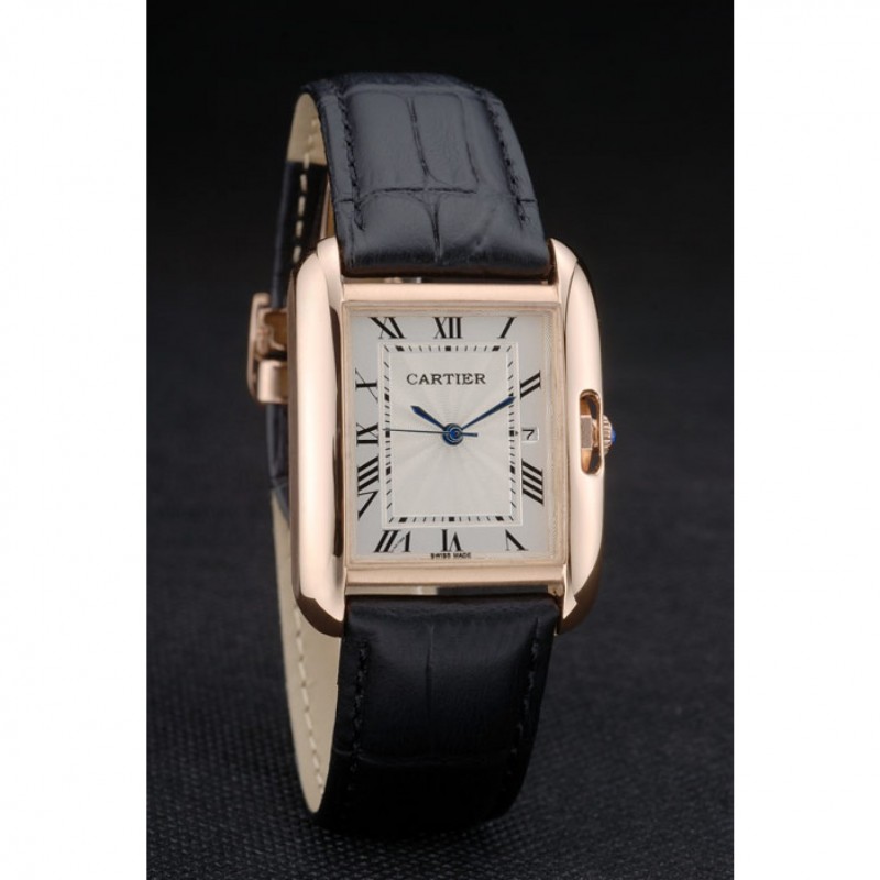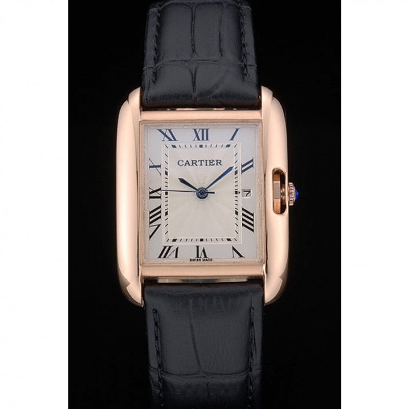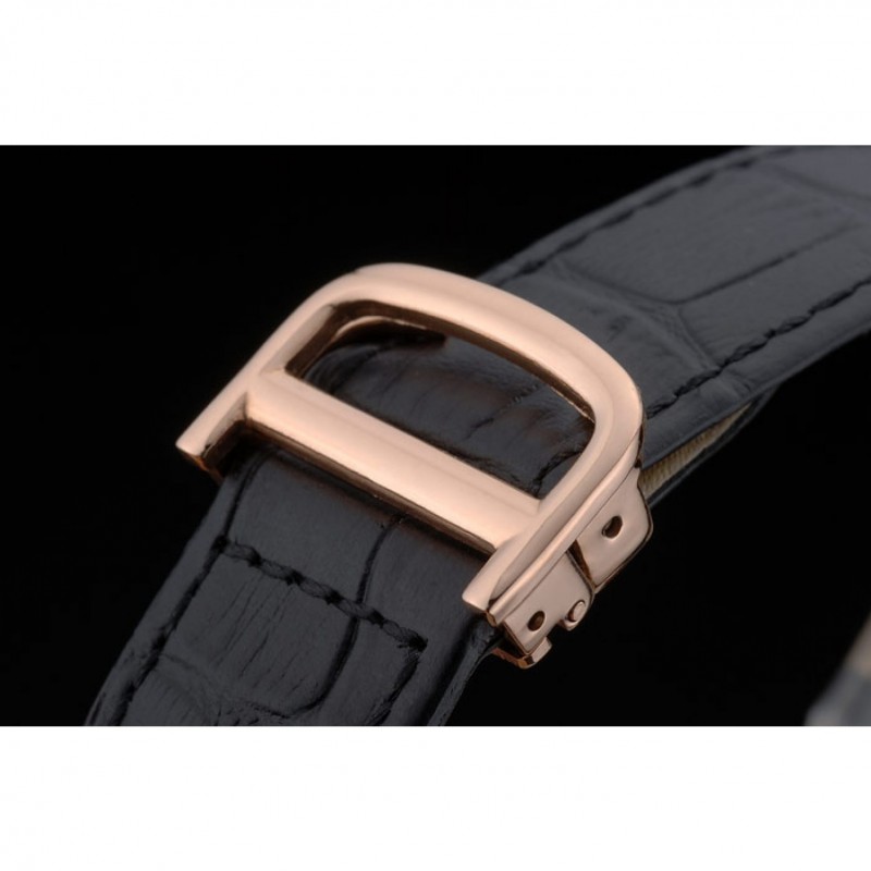 Bracelet:chaleur Cartier en relief bracelet en cuir crocodile noir avec rose 18K-plaqué or rabattable dans fermoir à boucle